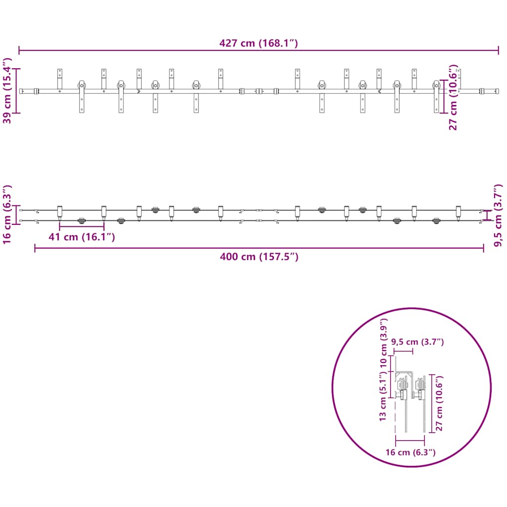 Liukuovi Hardware Kit 427 cm Teräs Musta