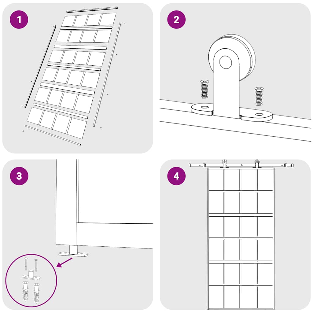 • Ovi voidaan asentaa vain yhdessä liukuoven asennussarjan kanssa. Löydät yhteensopivat liukuoven asennussarjat kaupastamme.
