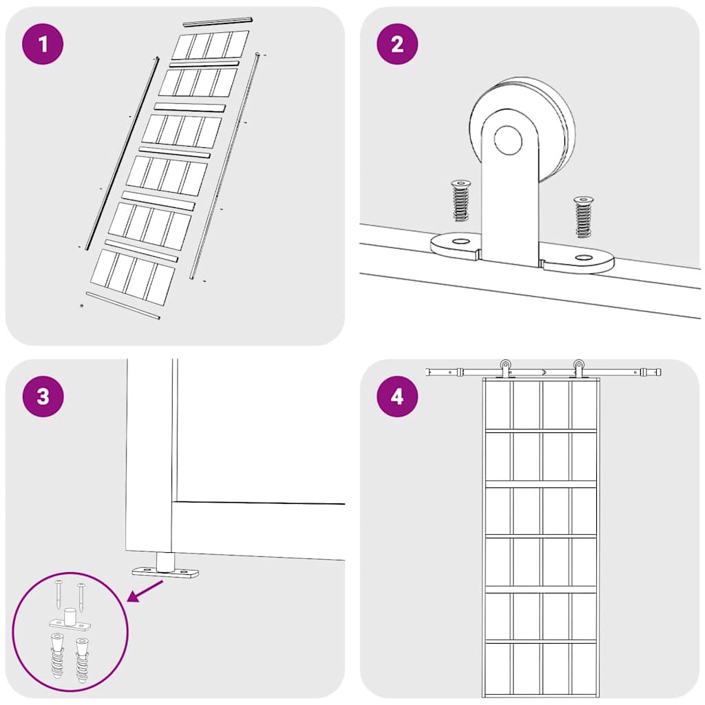 • Ovi voidaan asentaa vain yhdessä liukuoven asennussarjan kanssa. Löydät yhteensopivat liukuoven asennussarjat kaupastamme.