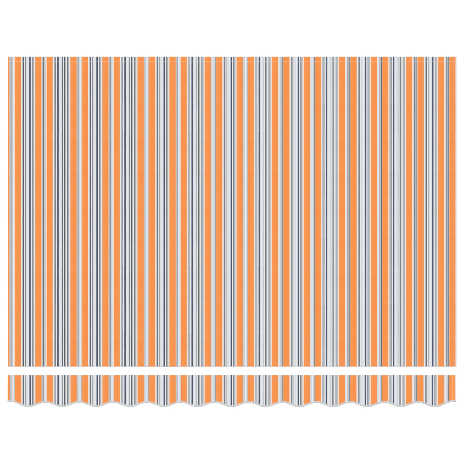 Lisää varjoa aurinkoisina päivinä säänkestävällä markiisimme, jossa on hieno raidallinen muotoilu oranssina, harmaana, sinisenä ja valkoisena.
