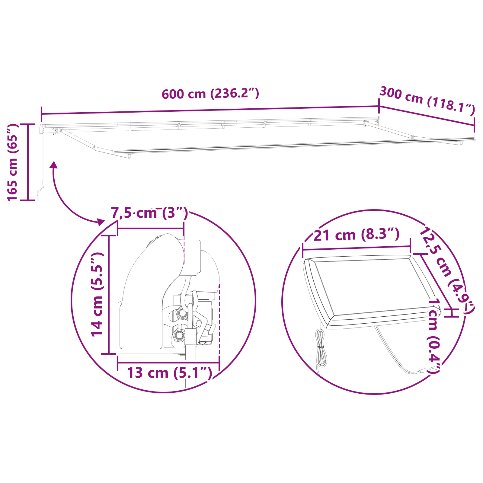 Kangas on sekä vedenpitävä että UV-kestävä, joten tämä markiisi suojaa voimakkaalta auringolta ja kevyeltä sadetta vastaan.