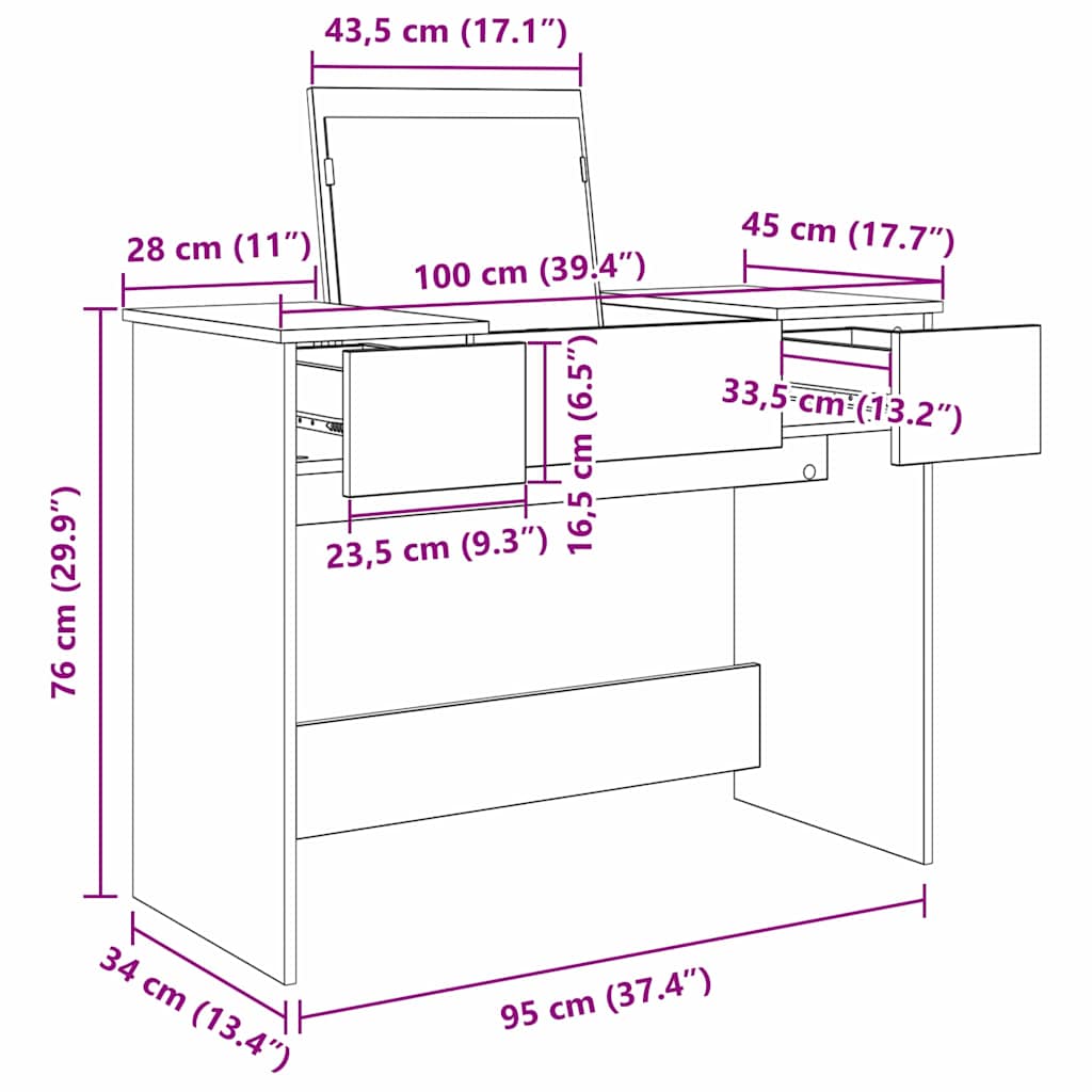 • Kestävä rakenne: Tämä meikkipöytä on valmistettu synteettisestä lastulevystä, mikä takaa sen kestävyyden jokapäiväisessä käytössä. Vankka rakenne varmistaa, että se pysyy kanssasi vuosia sitten.