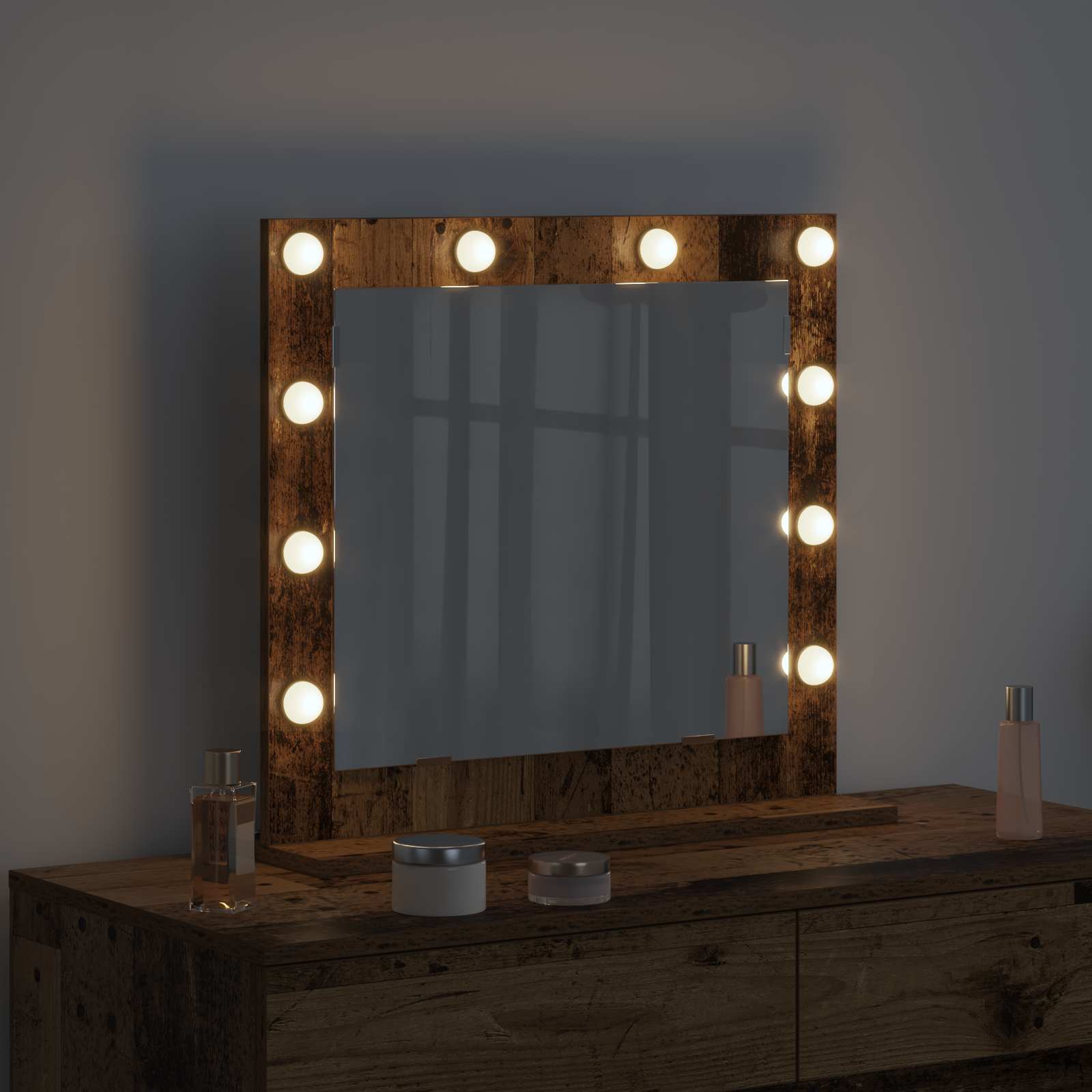 Meikkipöytäpeili LED-valoilla Vanha Puu 60x55x18 cm