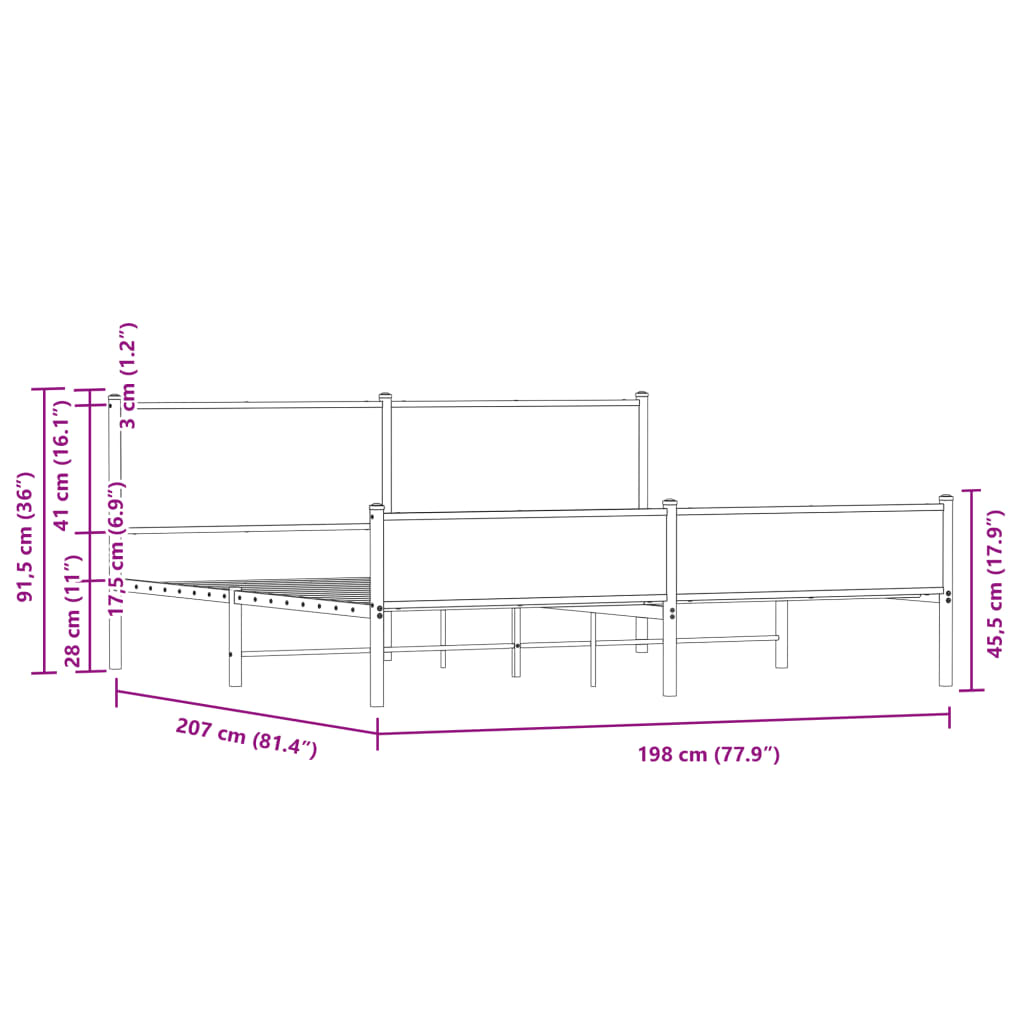 Metallinen sängynrunko ilman patjaa savutammi 193×203 cm