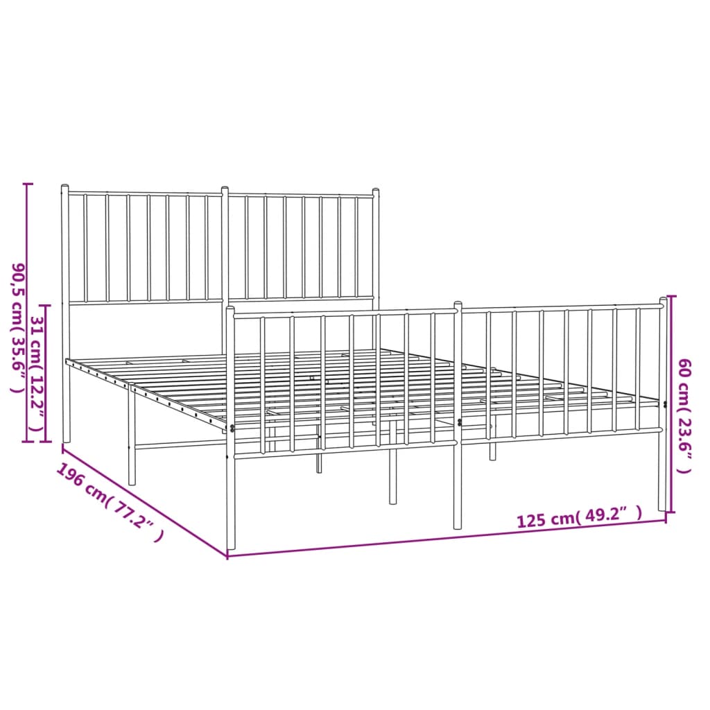 Metallinen sängynrunko päädyillä musta 120×190 cm