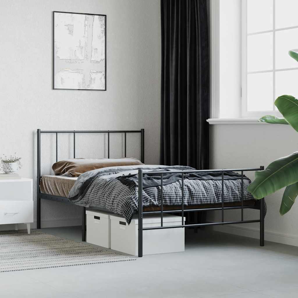 Metallinen sängynrunko päädyillä musta 80×200 cm