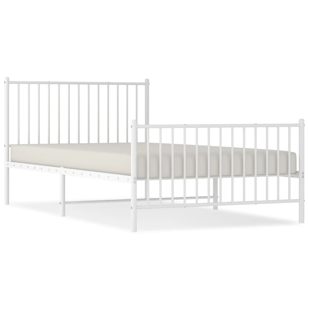 Metallinen sängynrunko päädyillä valkoinen 107×203 cm