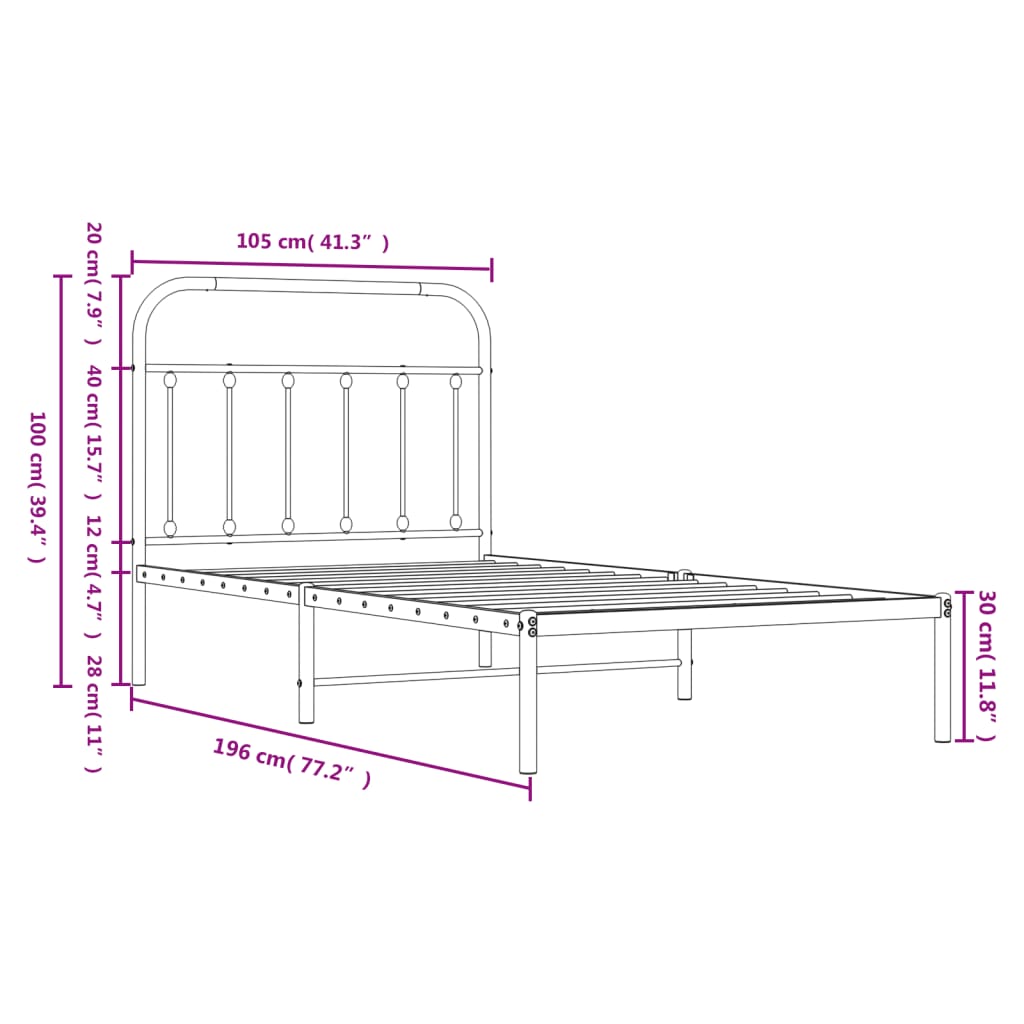 Metallinen sängynrunko päädyllä musta 100×190 cm