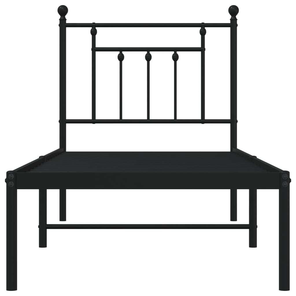 Metallinen sängynrunko päädyllä musta 75×190 cm