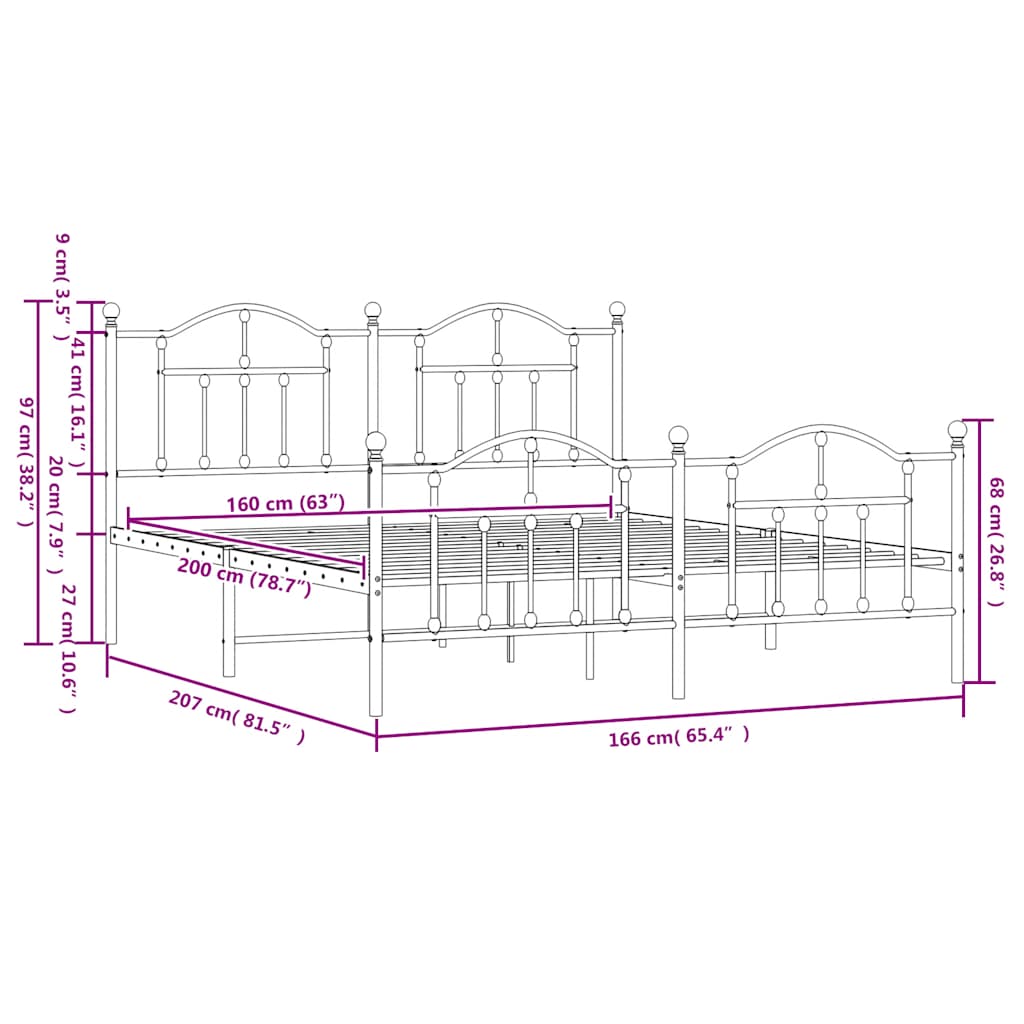Metallisängynrunko ilman patjaa päätylevy musta 160×200 cm