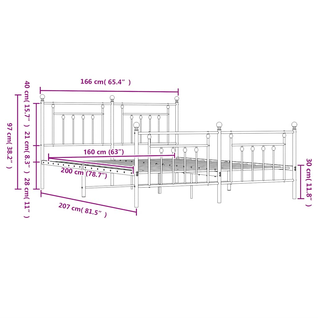 Metallisängynrunko ilman patjaa päätylevy musta 160×200 cm