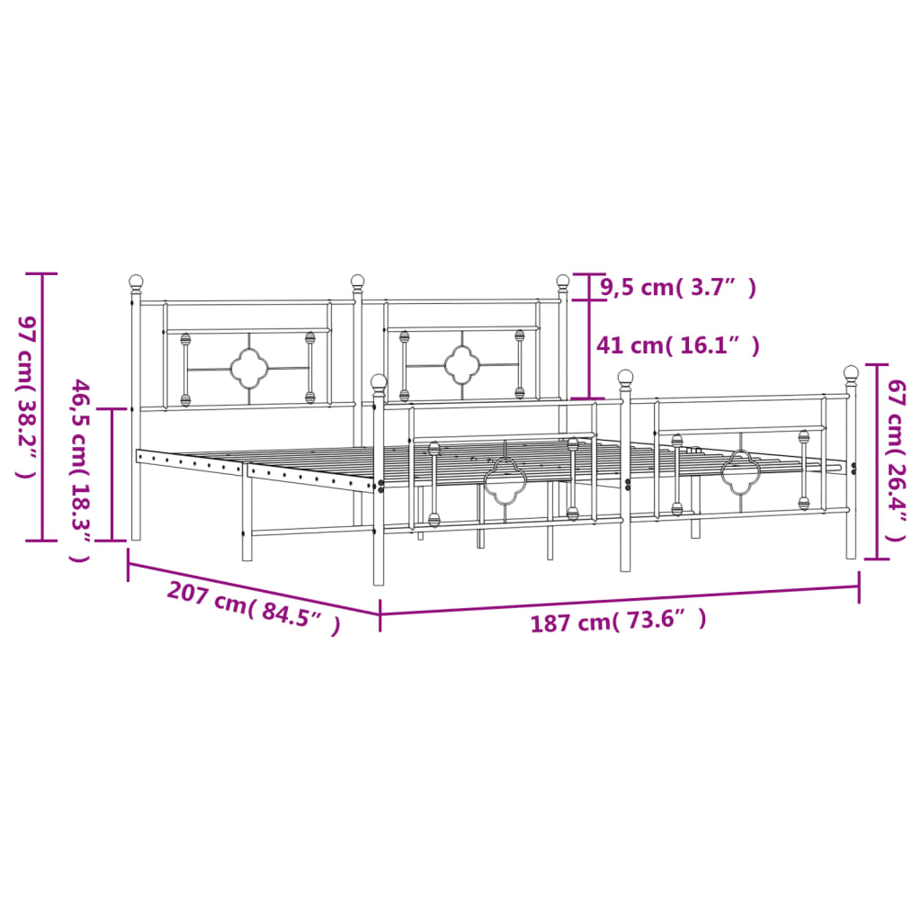 Metallisängynrunko ilman patjaa päätylevy musta 180×200 cm