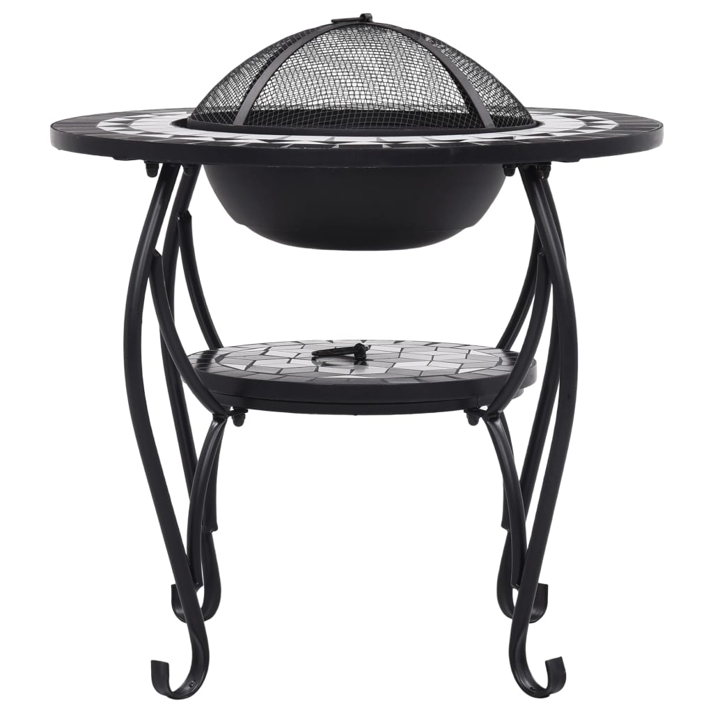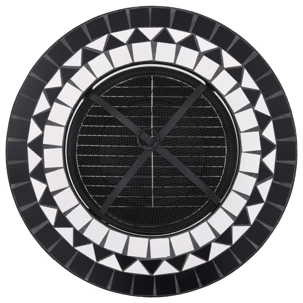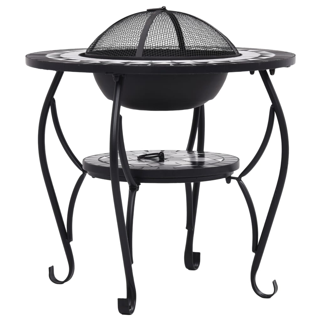 Teräksestä valmistettu tulisija on erinomainen absorboimaan ja säteilemään lämpöä. Sitä voidaan käyttää kuivapuun, tukkien tai puuhiilen polttamiseen. Tulimaljaa tukee nelijalkainen jalusta. Mukana tulevan turvaverkon avulla voit seurata palavaa tulta ja se sulkee tulen turvallisuuden takaamiseksi sekä estää kipinöiden ja roskien lentämisen ulos. Kohennustyökalua voidaan käyttää sekä verkon kannen poistamiseen että tukkien tai hiilien uudelleenjärjestelyyn. Lisäksi tulisijapöytää voidaan käyttää myös grillinä. Sen pyöreä keraaminen pinta tarjoaa täydellisen paikan juomille ja grillaustarvikkeille. Ole hyvä ja huomioi, että tämä tuote ei sovi ulos jätettäväksi kylmällä ilmalla.
