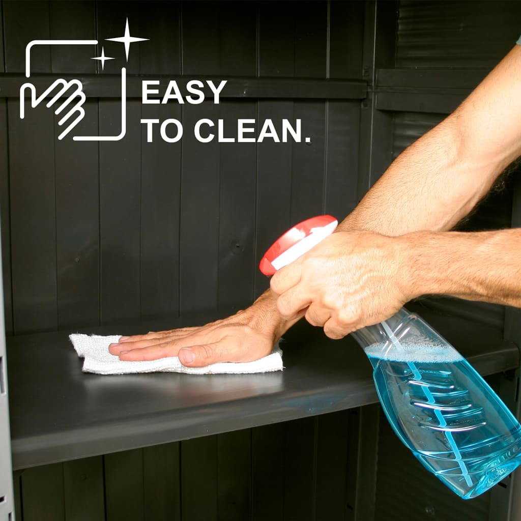Varastokaappi on valmistettu muovista, joten se on helppo puhdistaa. Kaapissa on reilusti säilytystilaa tärkeiden tavaroidesi pitämiseksi järjestyksessä ja kättesi ulottuvilla. Kodin järjestelijässä on kompakti suunnittelu ja se käyttää rajatun tilan upeasti hyväkseen.
