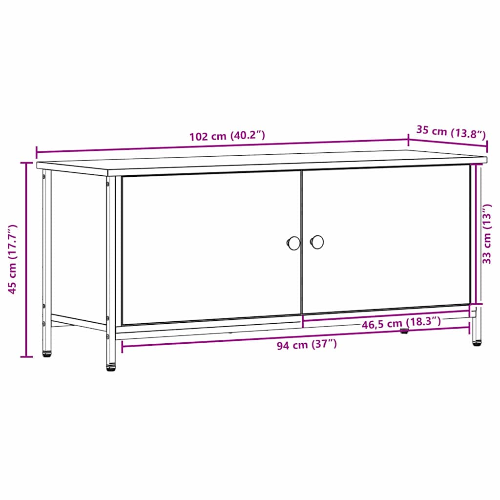 Musta tammi TV-taso Musta tammi Puulevy, Metalli 102 x 35 x 45 cm