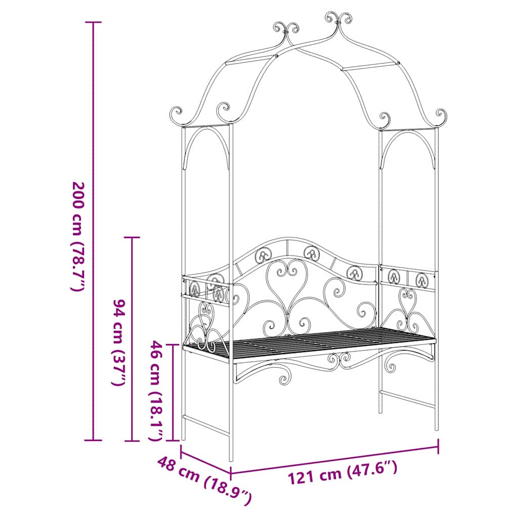 Tämä ulkopenkki on tehty parantamaan parvekettasi ja puutarhaasi. Se tarjoaa mukavaa istumista kahdelle. Tyylikäs musta viimeistely ja koristeelliset upotukset tekevät siitä hienon valinnan ulkotiloihin — täydellinen rentouttavaan iltapäivään tai tapaamiseen ystävien kanssa.