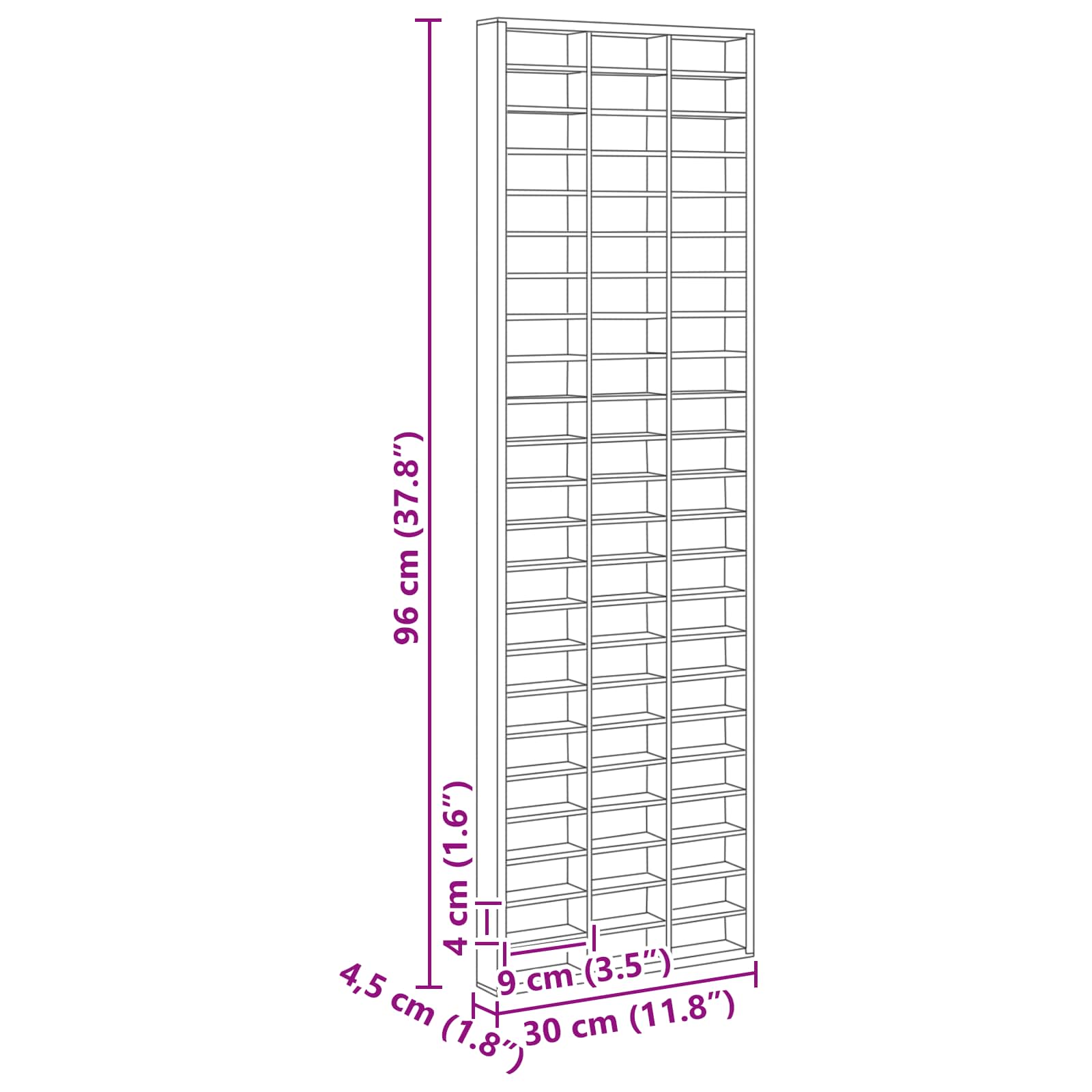 • Yleiset mitat: 30 x 4.5 x 96 cm (P x L x K)