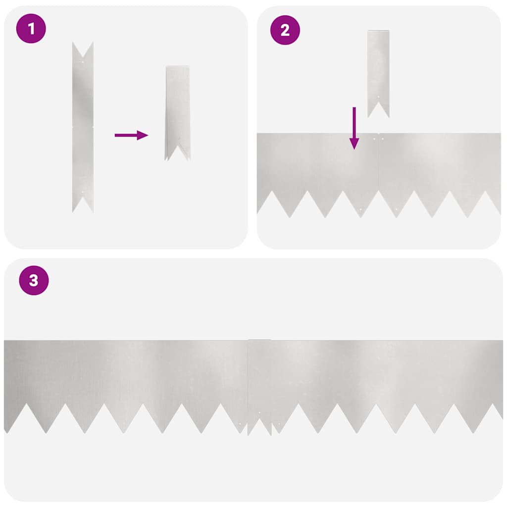 Tässä 30 osan nurmirajaussetissä on käytetty laadukasta ruostumatonta terästä, joka parantaa ulkonäköäsi. Tyylikäs hopea väri ja sileä pinta antavat modernin ilmeen, samalla kun rajat ovat käytännölliset maisemassasi.