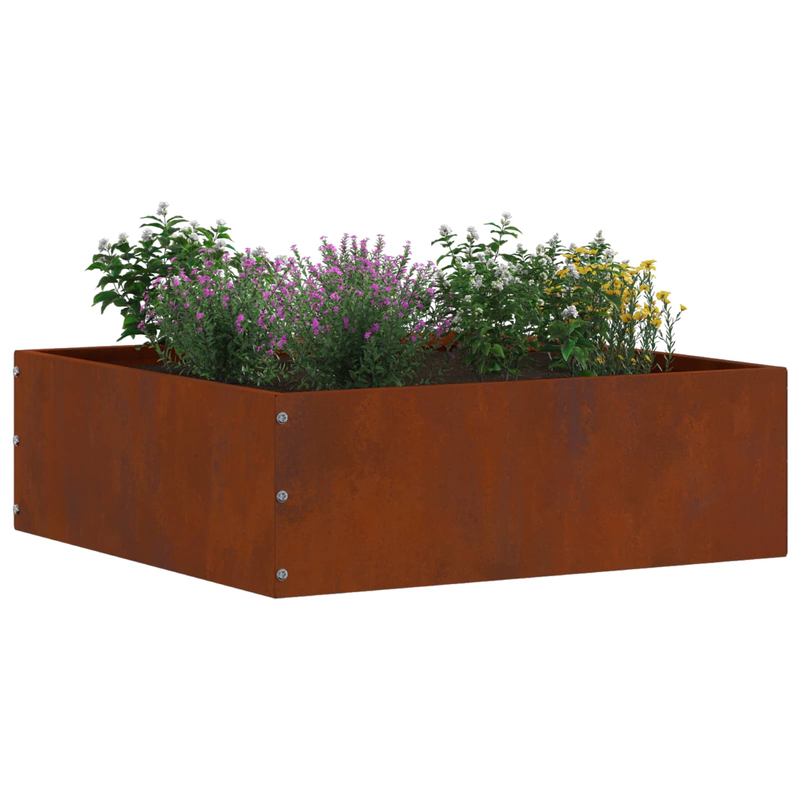Tämä teräksinen nurmikehys on moderni tapa erottaa puutarhan tai terassin alueet tyylikkäällä ja käytännöllisellä tavalla. Yksinkertainen neliömuoto tekee siitä helpon yhdistää erilaisiin maisemasuunnitelmiin.
