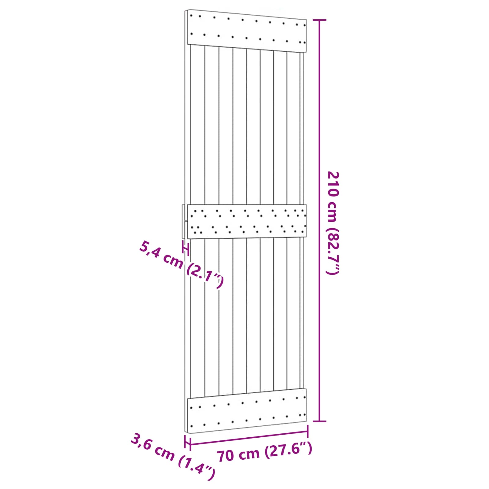 • Yleiset mitat: 70 x 5,4 x 210 cm (L x S x K)