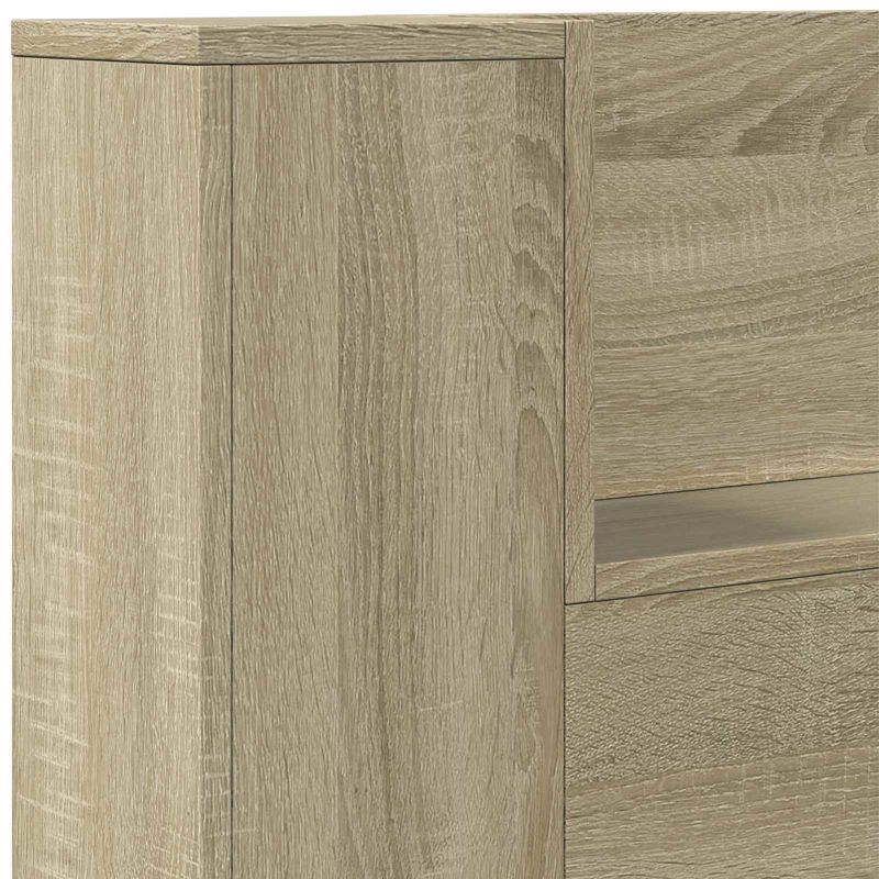 Tää sängynpäätykaappi LED-valolla tuo modernia tyyliä ja käytännöllisyyttä joka makuuhuoneeseen. Suunniteltu yksinkertaisuus mielessä, siinä on puhtaat linjat ja virtaviivainen ulkonäkö, mikä tekee siitä kauniin lisän niin nykyaikaisiin kuin minimalistisiin sisustuksiin. Sängynpääty ei tarjoa pelkästään tyyliä, vaan myös runsaasti säilytystilaa. Hyllyt, jotka on valmistettu teknisestä puusta, tarjoavat sujuvan ja kestävän pinnan koriste-esineille, kirjoille tai muille tarvikkeille. Innovatiivinen muotoilu mahdollistaa sen käytön erilaisten makuuhuoneympäristöjen yhteydessä, ja se houkuttelee niitä, jotka arvostavat järjestystä ja tyyliä. Sisäänrakennettu RGB LED-valaistus luo muunneltavaa tunnelmaa, mikä on täydellinen mielialan muuntamiseen. Olitpa lukemassa yöllä tai luomassa intiimiä tunnelmaa, kaukosäätimellä voi valita valaistuksen värin ja kirkkauden tosi helposti. Seinäkiinnitettävä muotoilu säästää lattiatilaa, saaden lisätilaa ulkonäölle ilman, että se vie tärkeätä lattiatilaa – mahtava mihin tahansa makuuhuoneeseen, tuoden muotoa ja toimintaa yhteen tasapainoon.