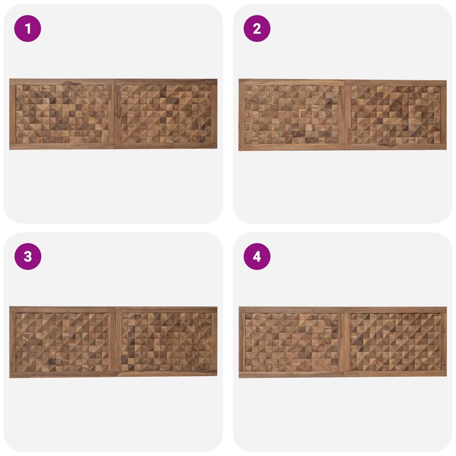 • Täysi tiikkipuu: Tämä päätylauta on valmistettu kestävästä ja vedenkestävästä tiikkipuusta, joka tuo tilaan ainutlaatuista tekstuuria ja lämpöä. Tiikin kestävyys takaa, että päätylauta pysyy kauniina pidempään.