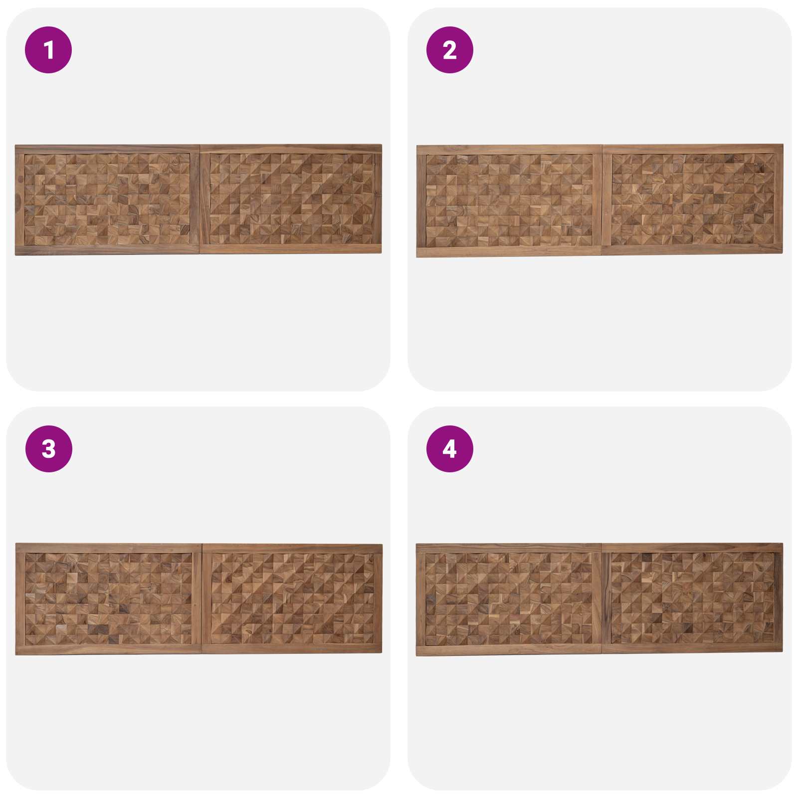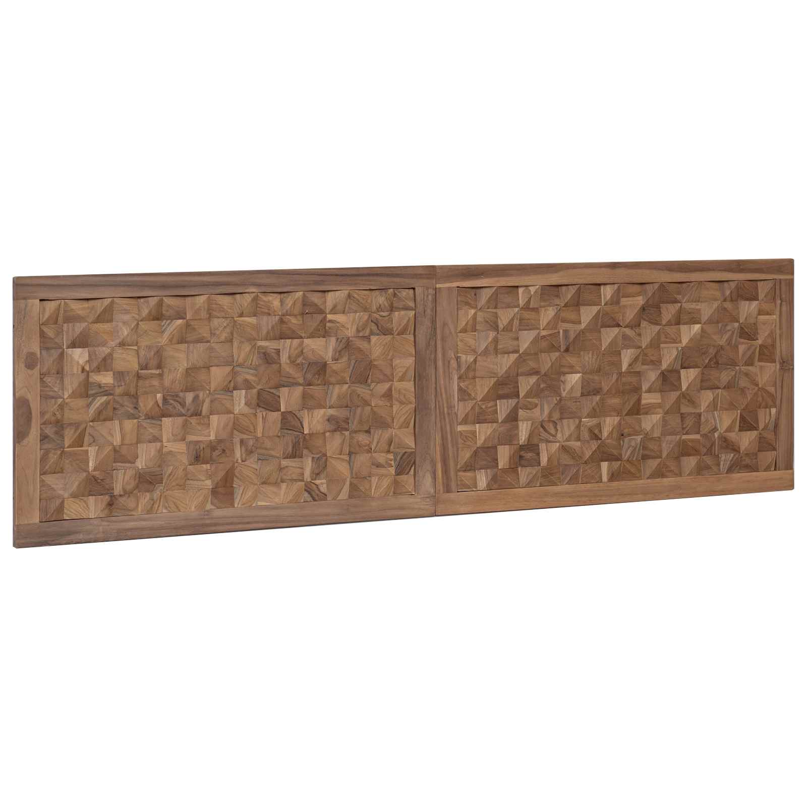 • Täysi tiikkipuu: Tämä päätylauta on valmistettu kestävästä ja vedenkestävästä tiikkipuusta, joka tuo tilaan ainutlaatuista tekstuuria ja lämpöä. Tiikin kestävyys takaa, että päätylauta pysyy kauniina pidempään.