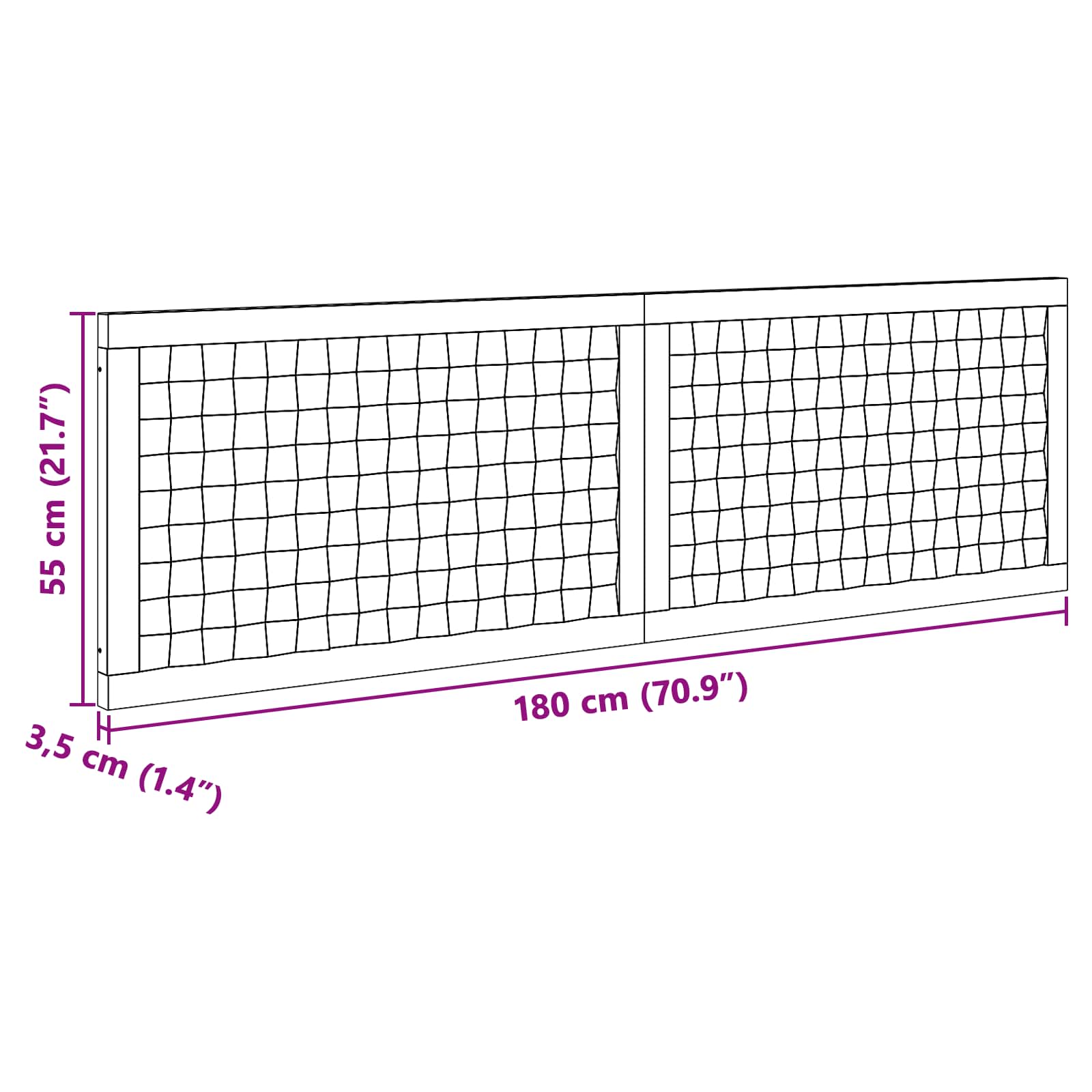 • Yleiset mitat: 180 x 3,5 x 55 cm (P x L x K)
