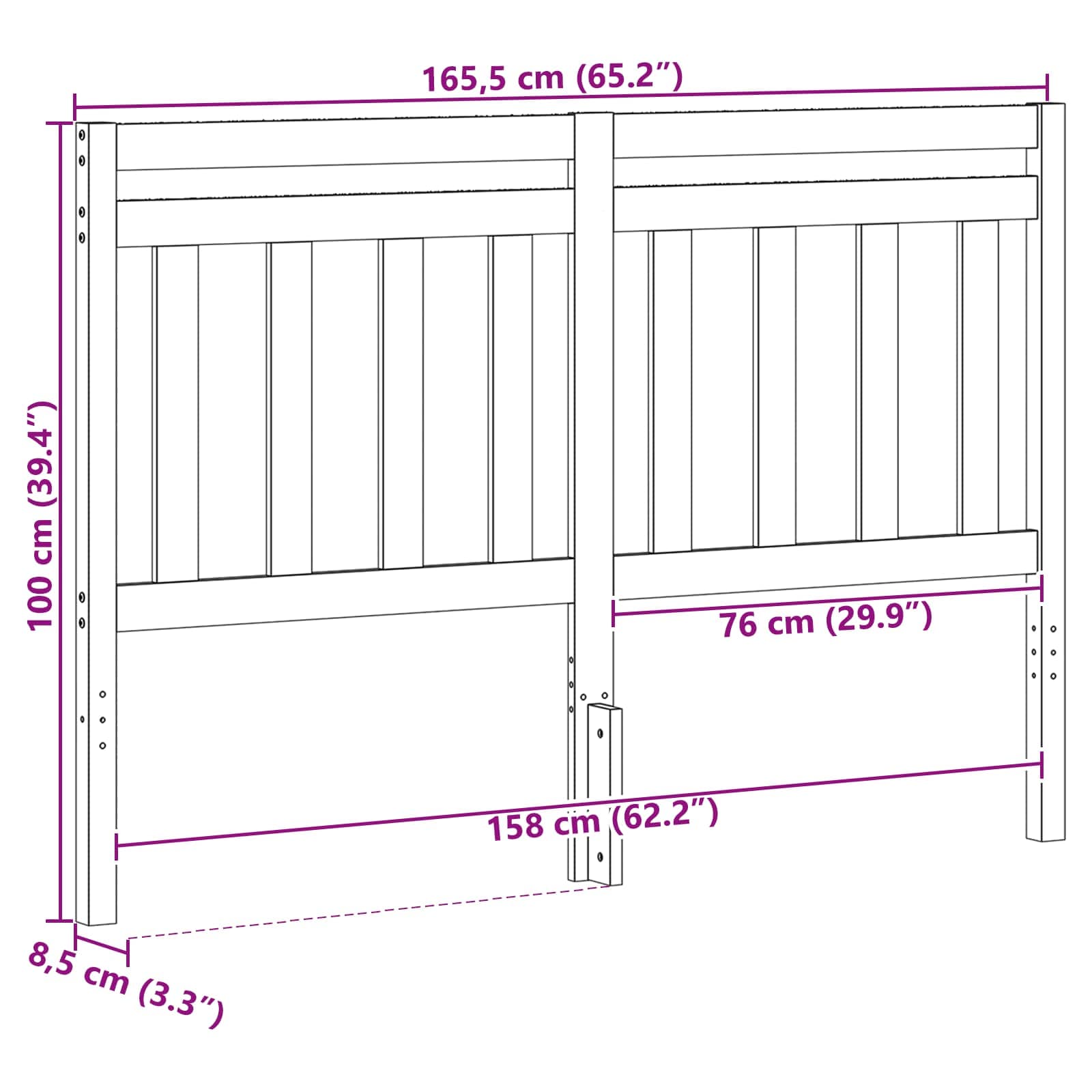 • Yleiset mitat: 165,5 x 8,5 x 100 cm (P x L x K)
