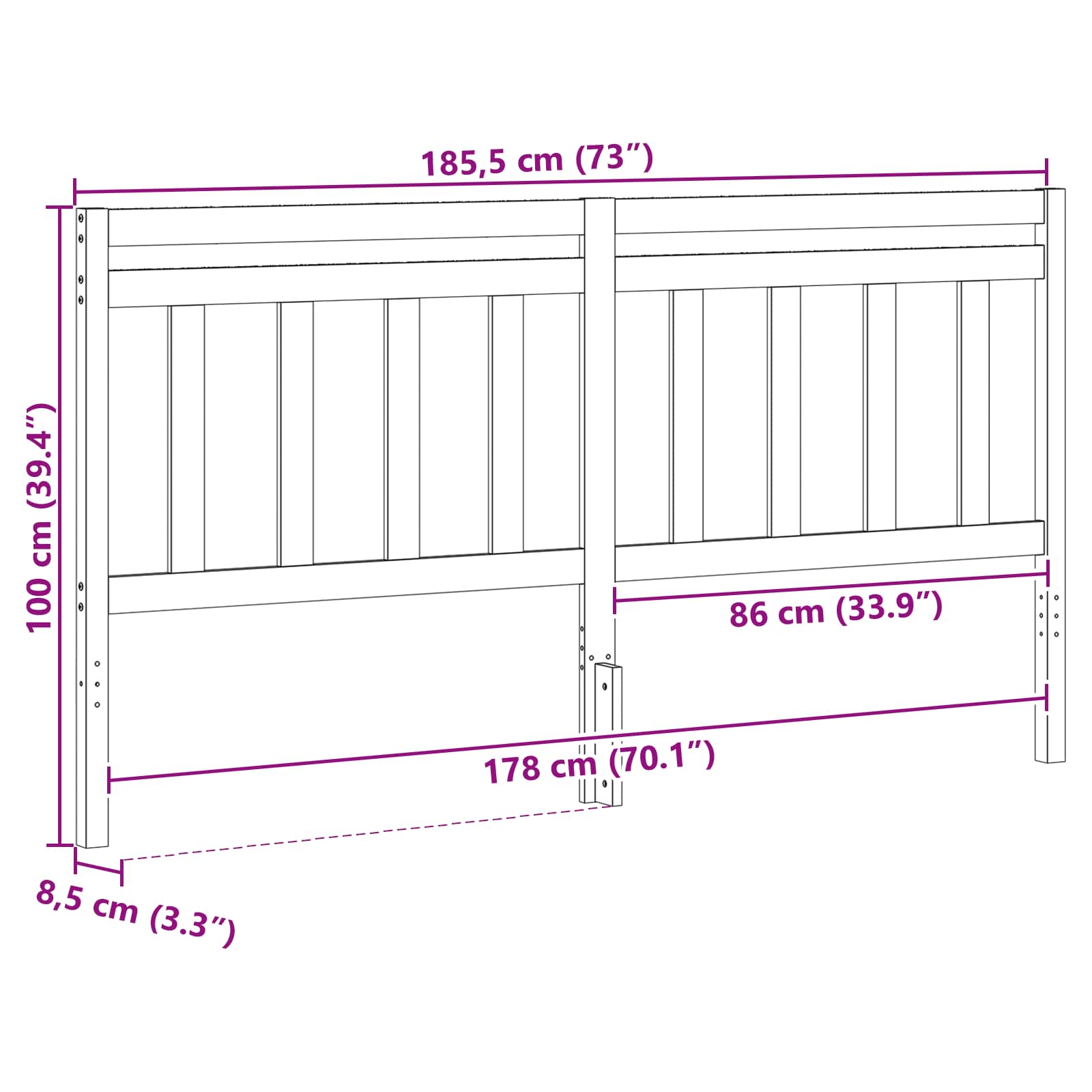 • Yleiset mitat: 185,5 x 8,5 x 100 cm (P x L x K)