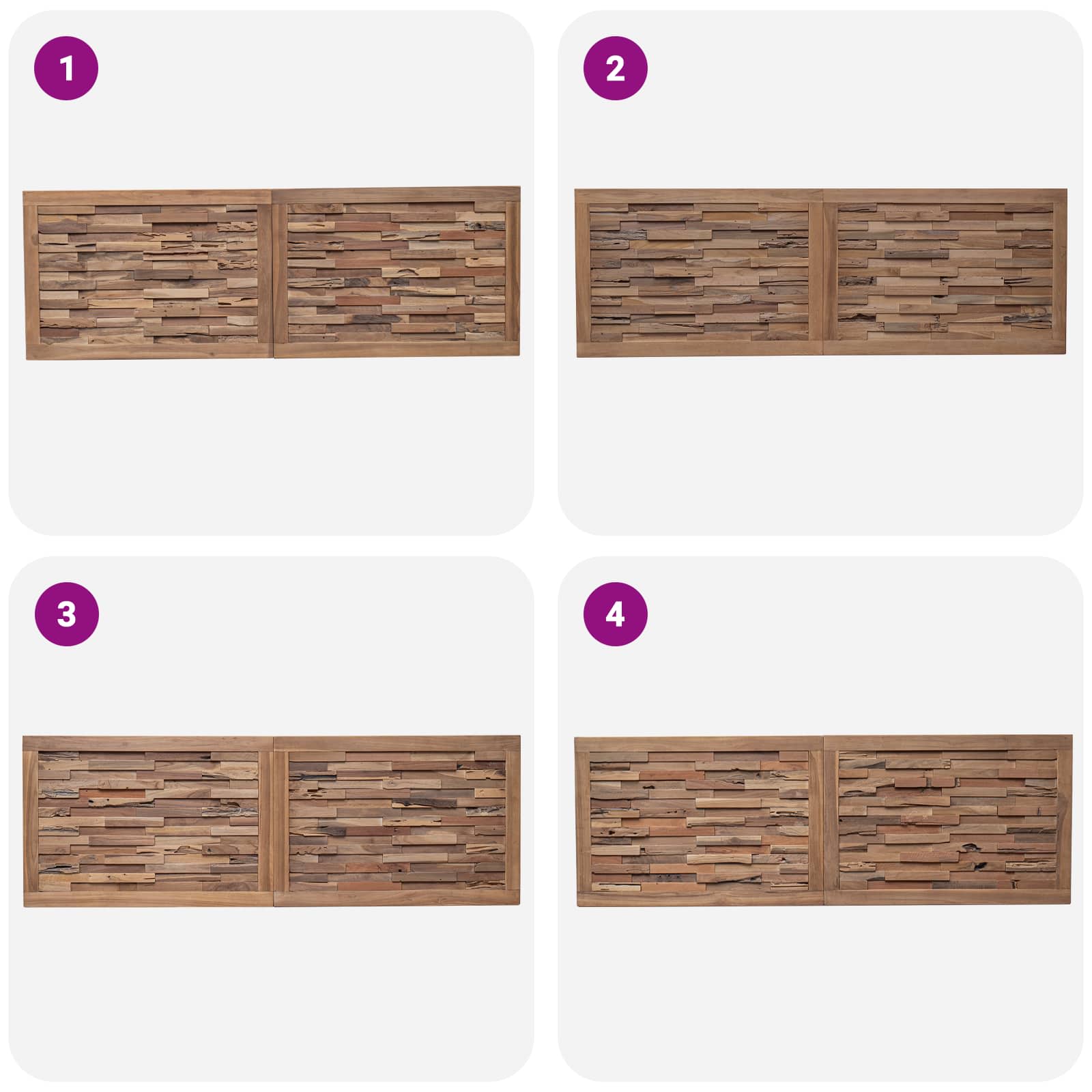 • Laadukkaat materiaalit: Tämä sängynpääty on valmistettu massiivisesta tiikki-parkettipuusta, mikä antaa sille upean luonnollisen ilmeen ja kestävyyden. Kosteudenkestävät ominaisuudet tekevät siitä täydellisen valinnan, jotta makuuhuoneesi pysyy tyylikkäänä ja kestävä käytössä.