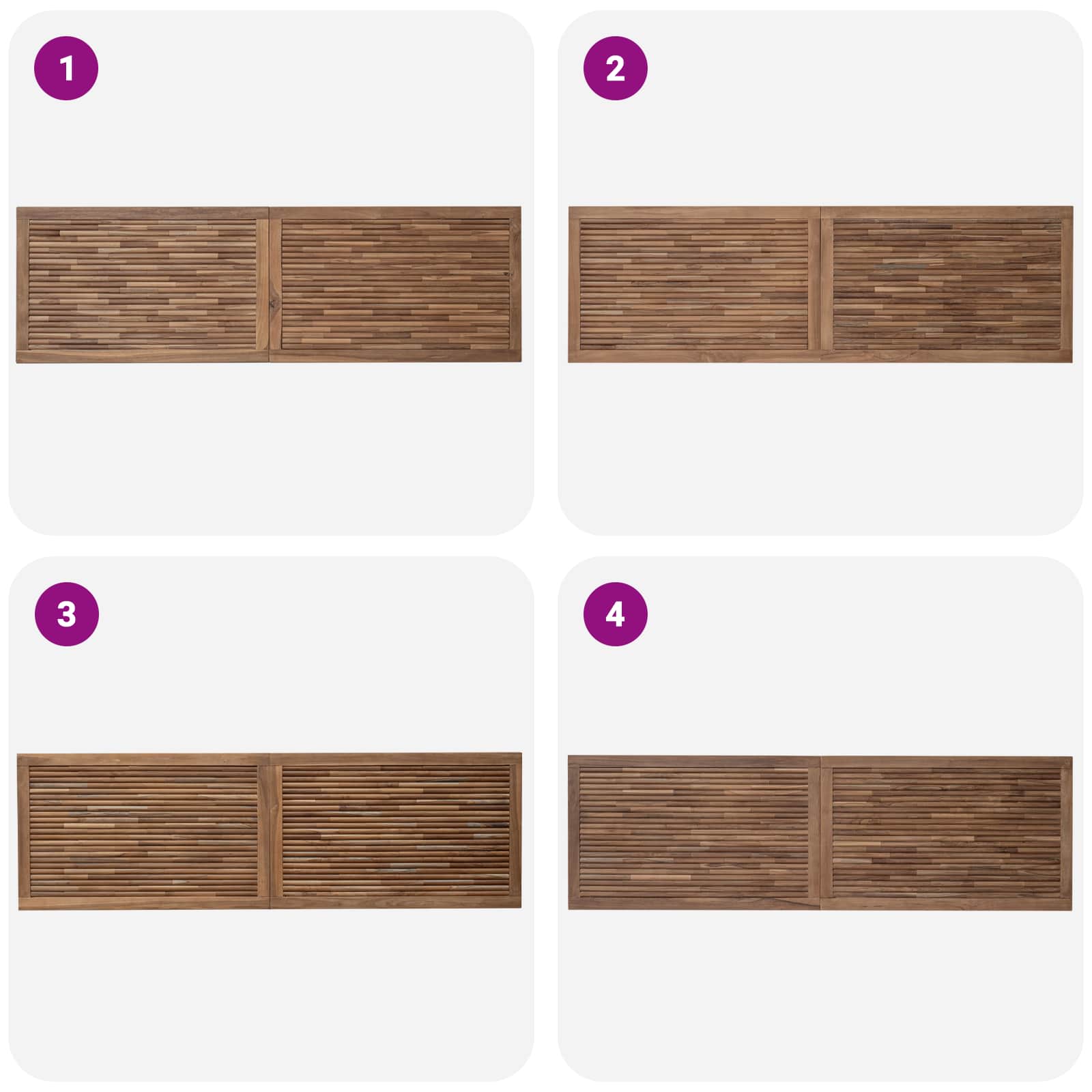 • Täysi tiikki: Tämä sängynpääty on valmistettu täysin tiikistä. Sen luonnollinen viimeistely korostaa kauniita rustiikkisia piirteitä ja kestävyyttä. Kestävän tiikin ansiosta se takaa, että saat pitkän käyttöiän, mikä tekee siitä erinomaisen lisän makuuhuoneeseesi.