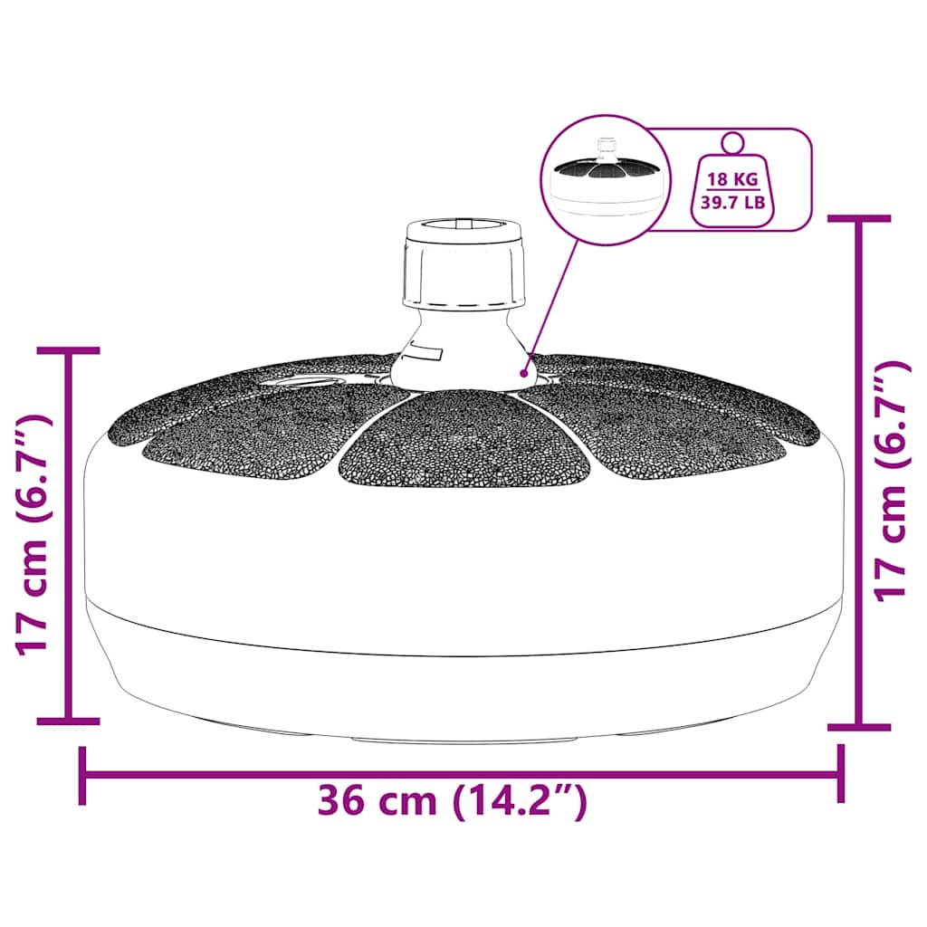 Tämä päivänvarjon alusta on suunniteltu täytettäväksi hiekalla tai vedellä painoa varten. Se toimii lujana ja tukevana alustana päivänvarjosi paikoillaan pitämiseen.