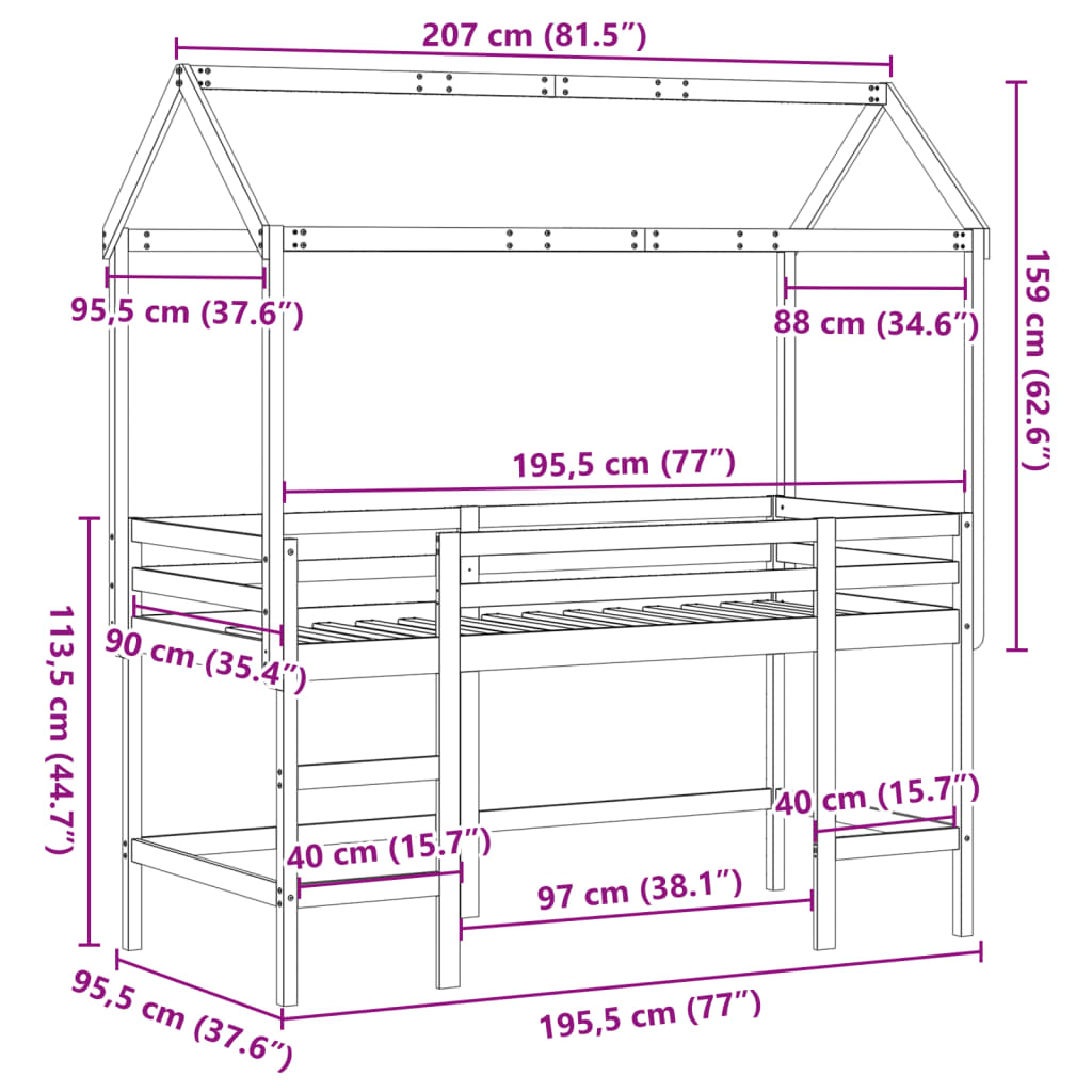 Tämä täydestä männystä valmistettu lasten parvisänky sopii niin hauskanpitoon kuin tilan säästämiseen.