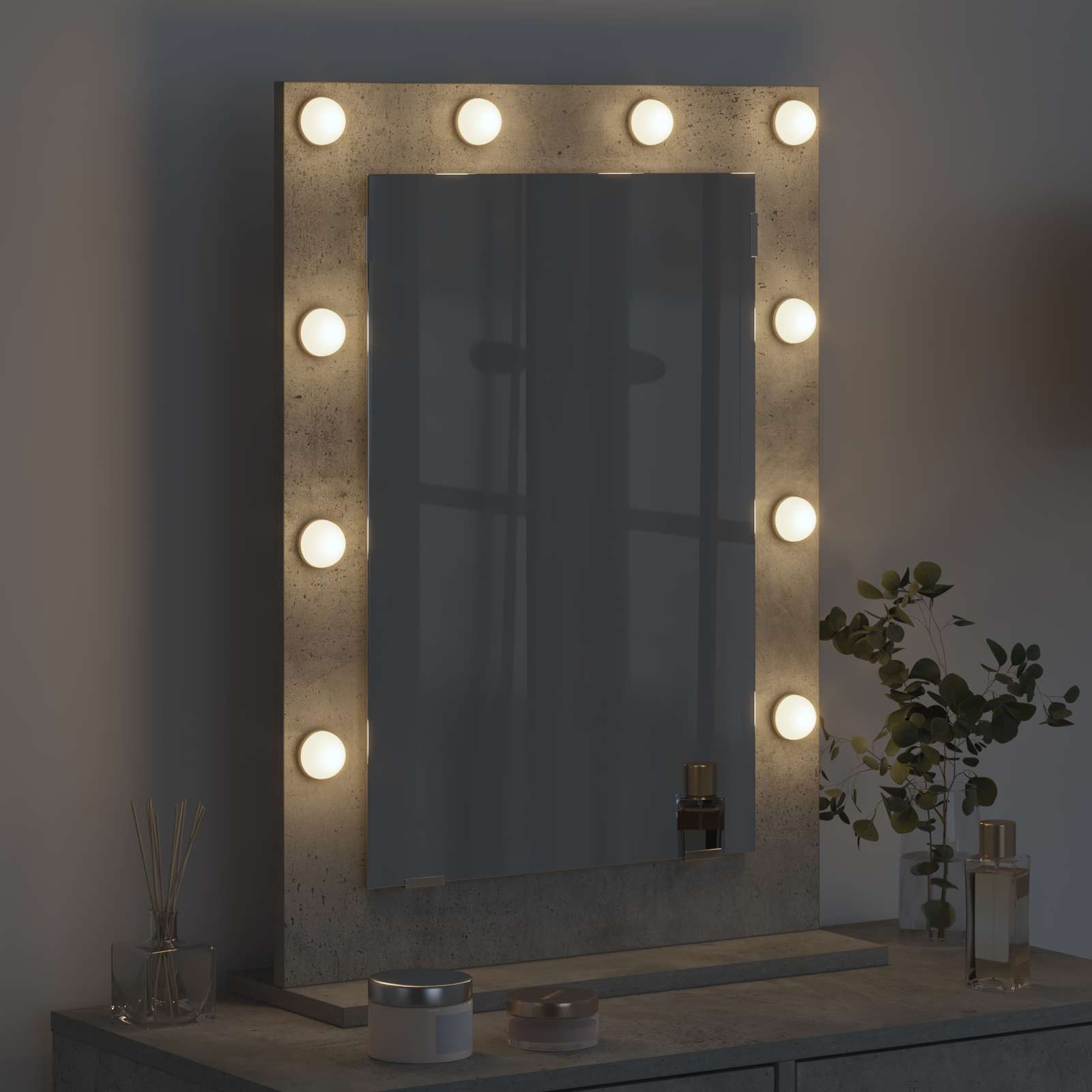 • Teollinen Suunnittelu: Muotoilu sopii moderneihin huoneisiin, ja sen raakabetonipinta sulautuu kauniisti makuuhuoneeseesi tai kylpyhuoneeseesi. Tämä trendikäs peili tuo ainutlaatuisuutta mihin tahansa ympäristöön.