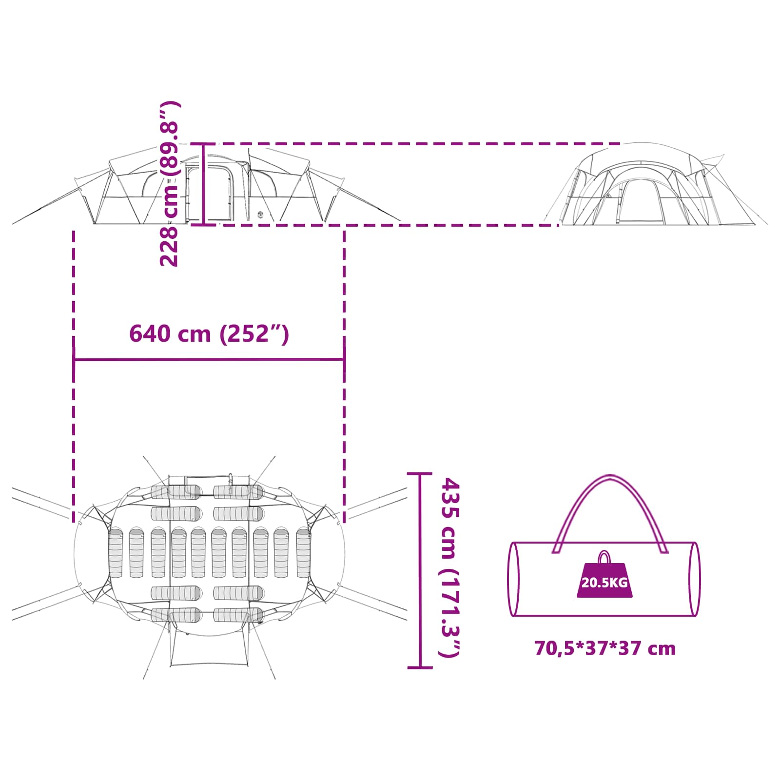 • Monipuolinen käyttö Tämä teltta tarjoaa avarat sisätilat perheelle, ja se soveltuu erilaisiin ulkotilanteisiin, leiripaikoista rauhalliseen metsään. Se tukee monia aktiviteetteja ja tarjoaa mukavuutta eri tilaisuuksissa.