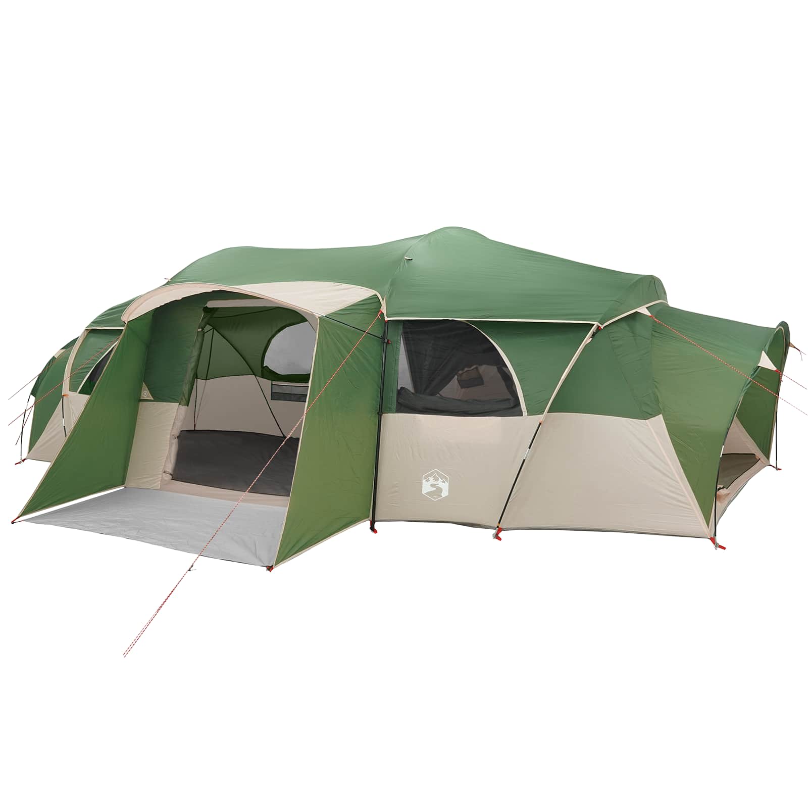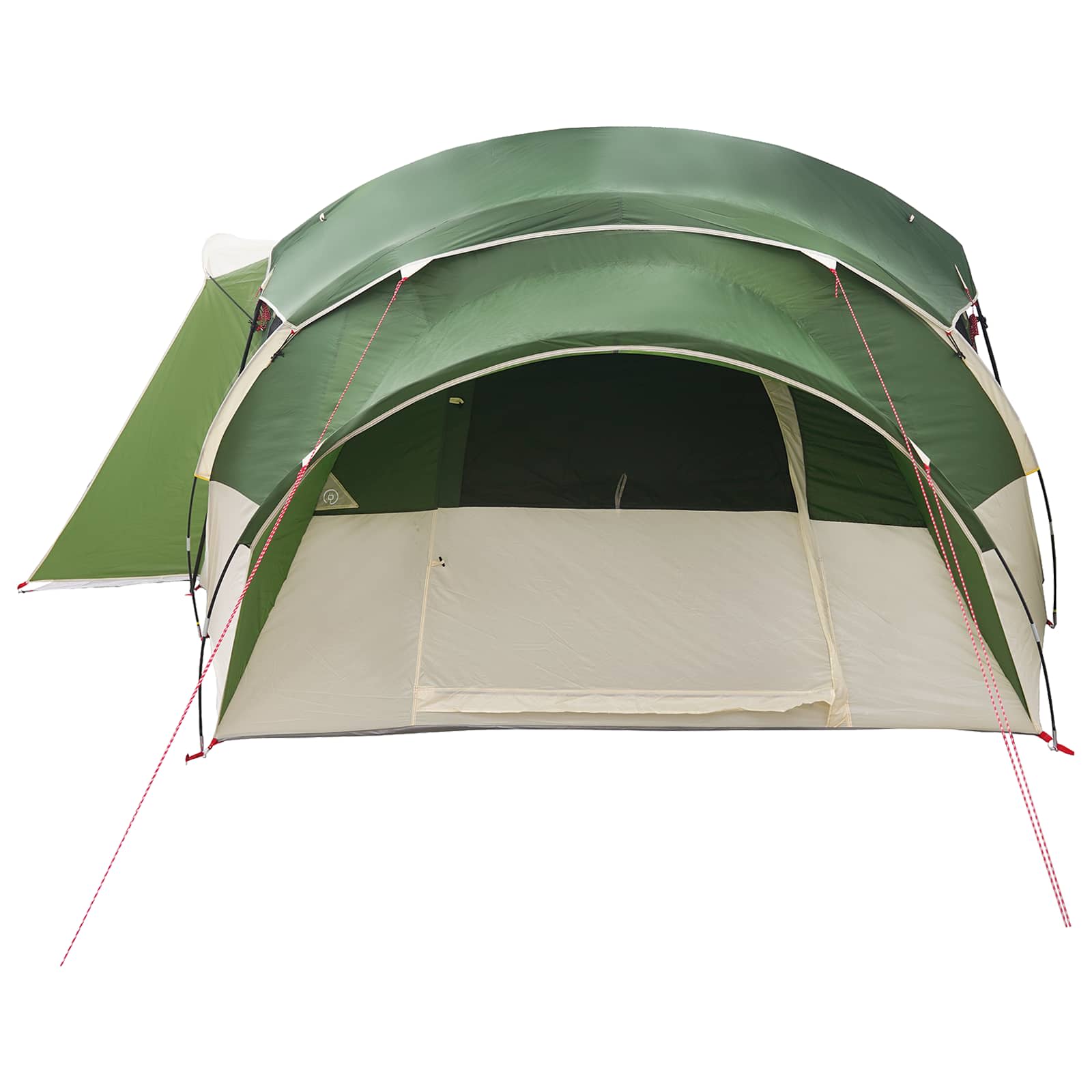 • Käytännön ominaisuudet Teltassa on verkkopaneelit ilmavuutta varten, irrotettava sadepeite suojaksi ja integroitu E-portti kaapeleille. Sisätaskut tarjoavat säilytystilaa ja jakaja lisää yksityisyyttä, kun taas lyhtykoukku tukee valaistusta.