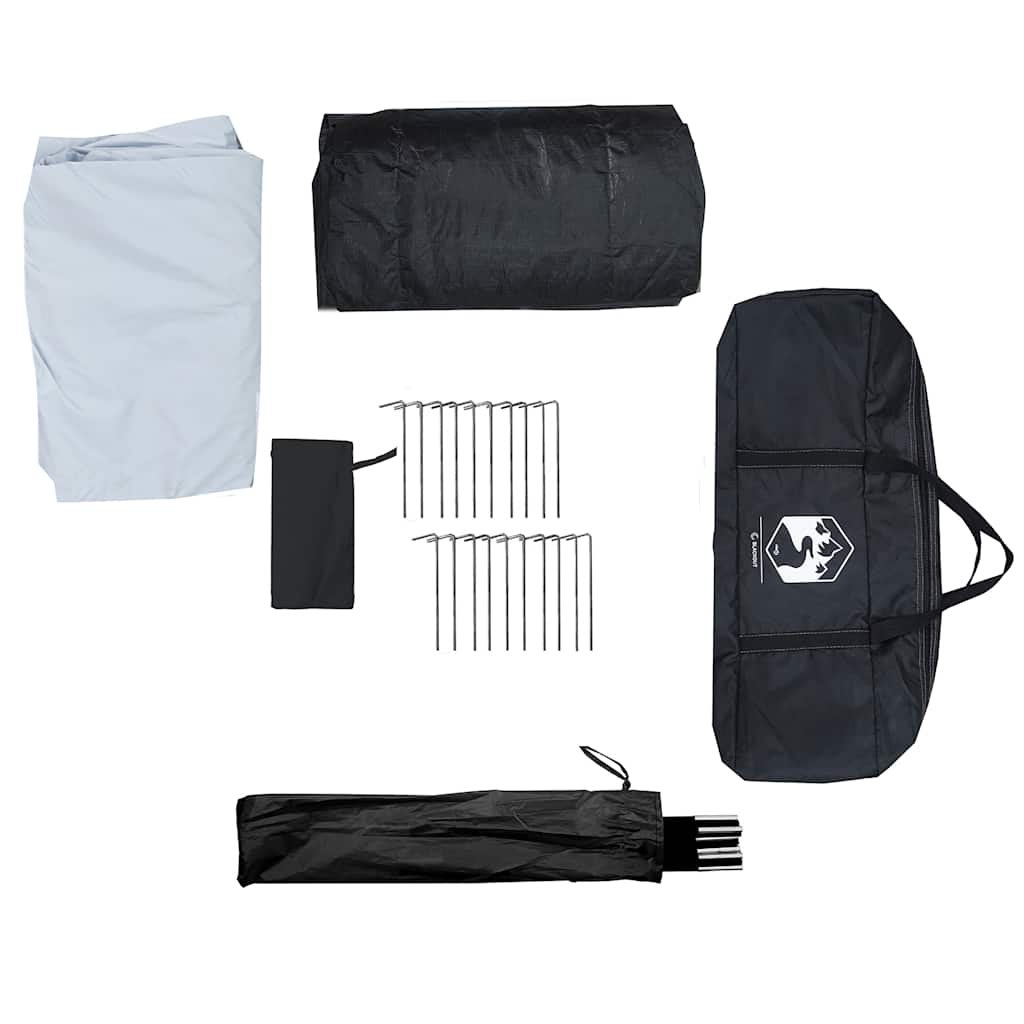 • Mukana aurinkokatoksen päätangot: Tämä retkeilyteltta sisältää päätangot, joiden avulla on helppo nostaa ovi ja luoda aurinkokatos. Nyt voit nauttia upeasta ulkoilmasta varjossa pysyen!