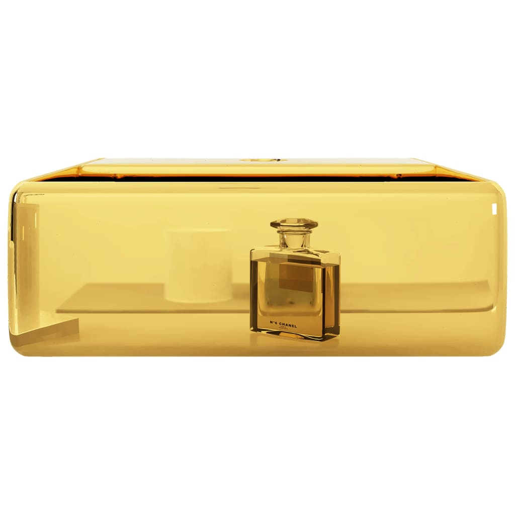 Pesuallas ei toimi vain päivittäisenä käyttötavarana, se on myös koriste elintilaasi. Sen kullanvärisen, trendejä asettavan ja modernin suunnittelun ansiosta pesuallas sopii mihin tahansa sisustukseen. Koska se on valmistettu keramiikasta, pesuallas on helppo puhdistaa. Pesualtaan kiiltävä pinta lisää sen charmia. Pesualtaassa on hanareikä hanan asentamista varten.