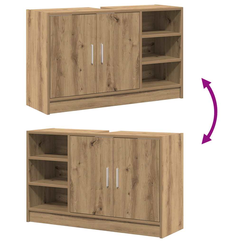 Tämä pesukaappi tuo upeaa lisäarvoa kylpyhuoneeseesi. Se yhdistää käsityön käytännölliseen suunnitteluun ja tarjoaa tehokasta säilytystä. Käsityöläistammi tuo syvyyttä ja tyyliä, samalla säilyttäen toimivuuden.