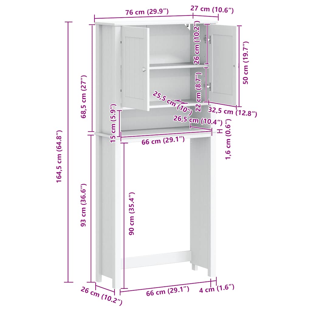 • Mitat: 76 x 27 x 164,5 cm (P x L x K)