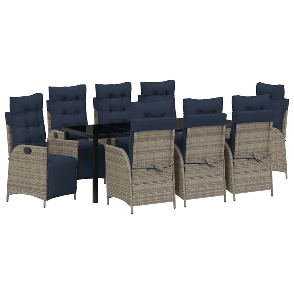 Piharuokailu setti tyynyllä 9 pcs Harmaa ja musta Rottinki