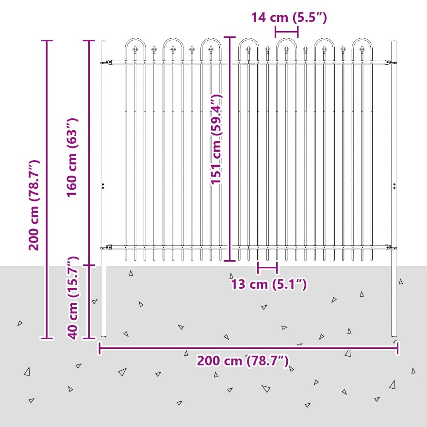 • Ominaisuudet: Jauhemaalattu teräs takaa tyylikkyyden ja kestävyyden, joten aita on pitkäaikainen osa ulkotiloja. Teräs on käsitelty säänkestäväksi, tassäy ja pitkä käyttöikä käy käsi kädessä hienostuneen ilmeen kanssa. Tämä materiaalivalinta vaatii vain vähän huoltoa, pidä ulkotilat siisteinä.