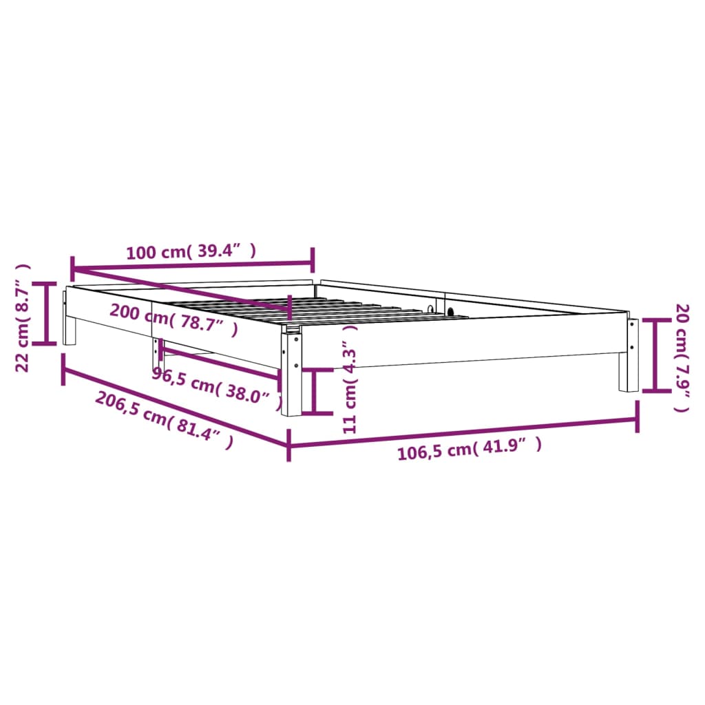 Pinottava sänky valkoinen 100×200 cm täysi mänty
