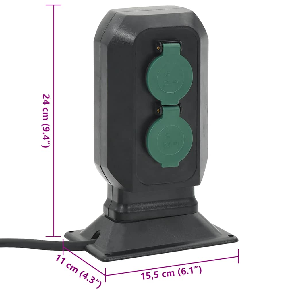• Roisketiivis ja turvallinen: Tässä ulkona toimivassa virranjakajassa on kestävä muovikotelo ja IP44 pistorasiat saranoiduilla kansilla, mikä varmistaa sen sään- ja roisketiiviyden. Tämä tekee siitä ihanteellisen valinnan ulkokäyttöön.