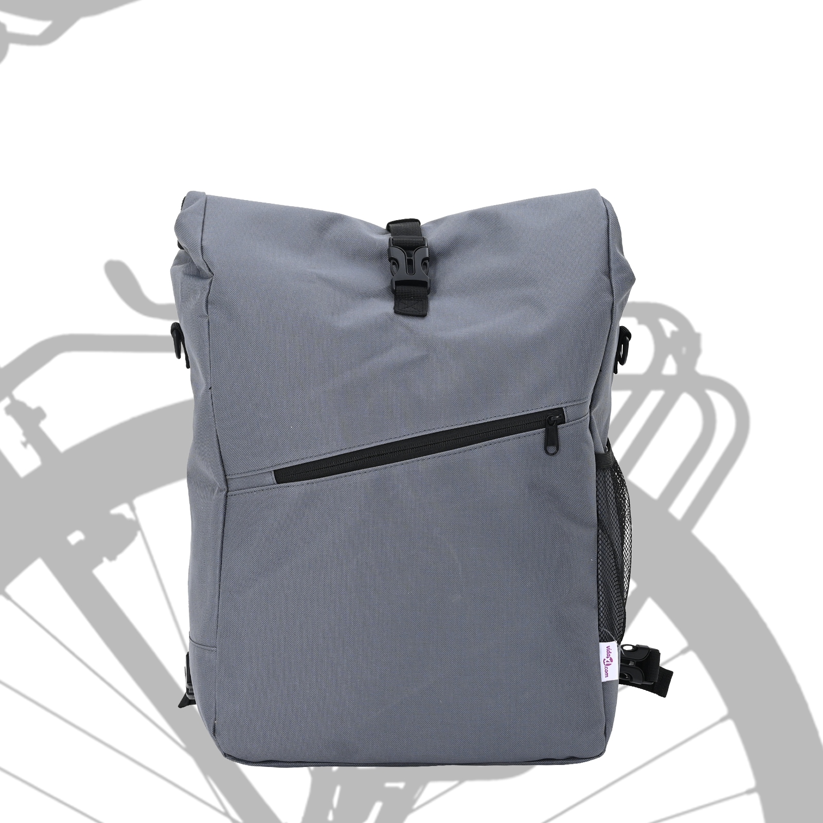 Tämä pannier-laukku on tehty modernille pyöräilijälle, joka arvostaa tyyliä ja käytännöllisyyttä. Kirkas harmaa väri sopii monenlaisiin pyörätyyleihin, ja se tarjoaa runsaasti tilaa työkaluillesi, välipaloillesi ja muille henkilökohtaisille tavaroillesi. Se on täydellinen jokapäiväisiin ajoihin tai pitkiin retkiin.