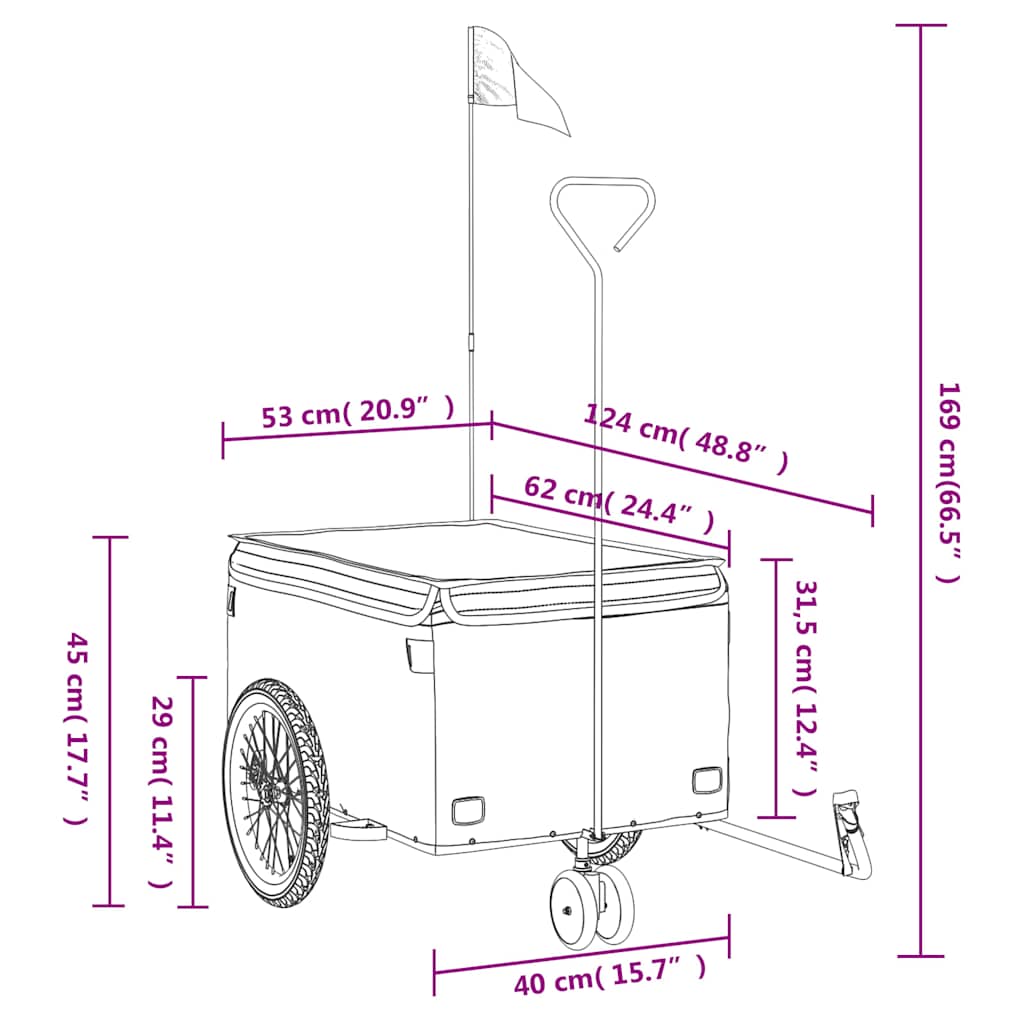 Polkupyörän peräkärry musta ja oranssi 30 kg rauta