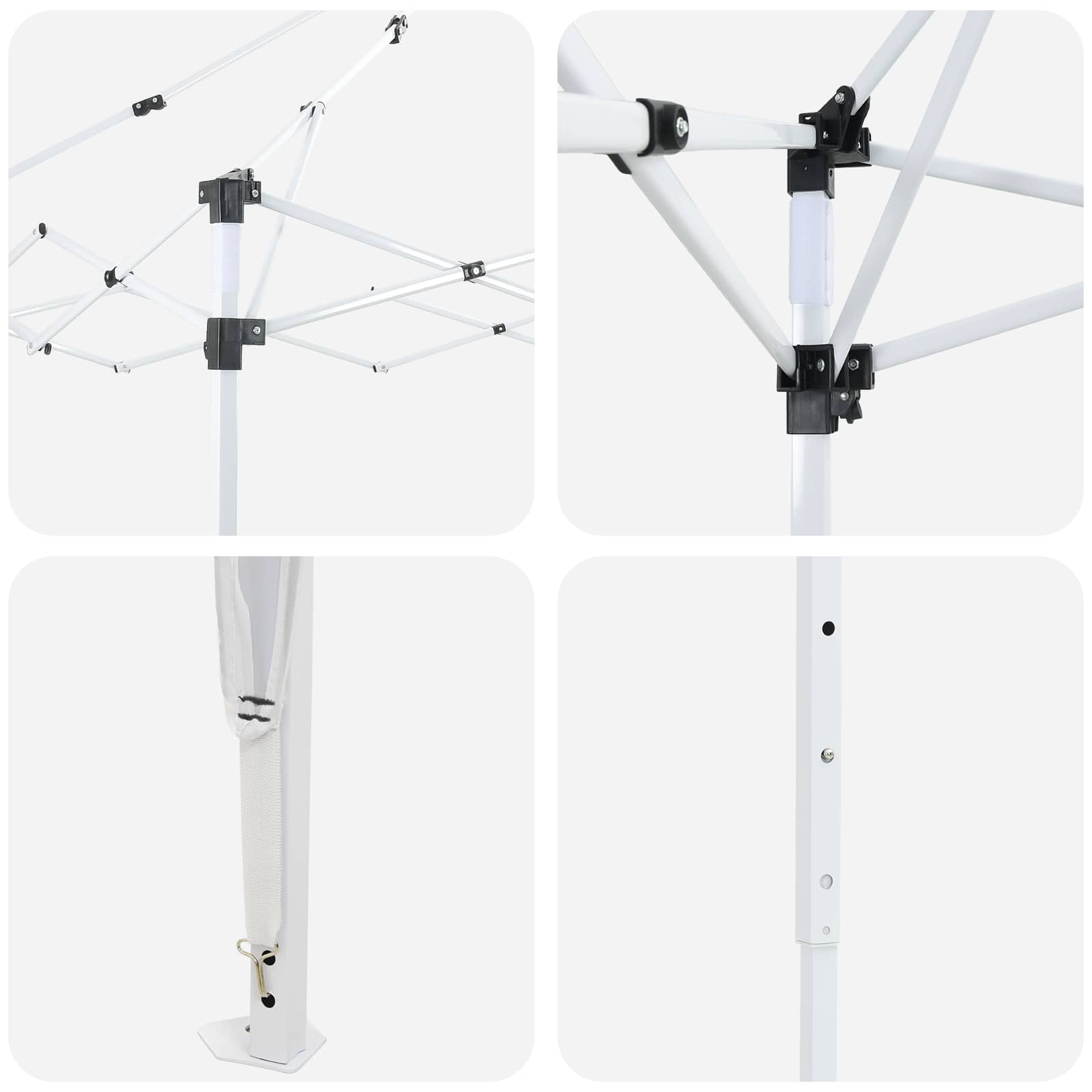 • Korkeussäädettävä mekanismi: Manuaalinen korkeussäätö kolmen tason paketti antaa mahdollisuuden muokata teltan korkeutta joustavasti eri tilaisuuksiin. Olipa kyseessä rento kokoontuminen tai juhlava tilaisuus, korkeuden säätö parantaa teltan toimivuutta.