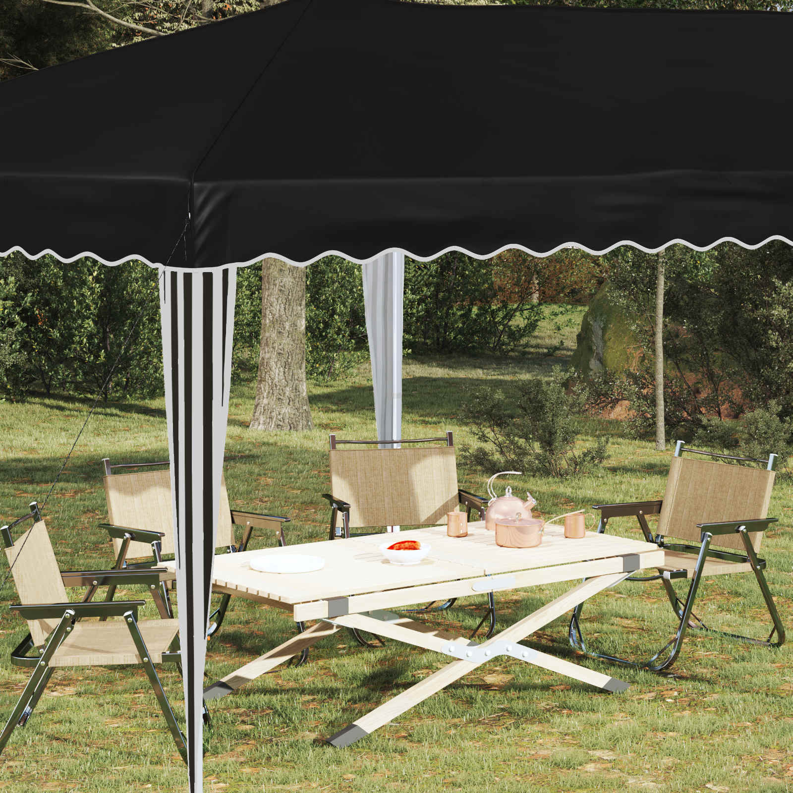 • Laaja käyttö: Sopii hyvin juhliin, markkinoille, piknikeille ja muille ulkoilmatapahtumille. Sen käytännöllinen muotoilu tekee siitä loistavan valinnan niin rennolle kuin viralliselle kokoontumiselle.
