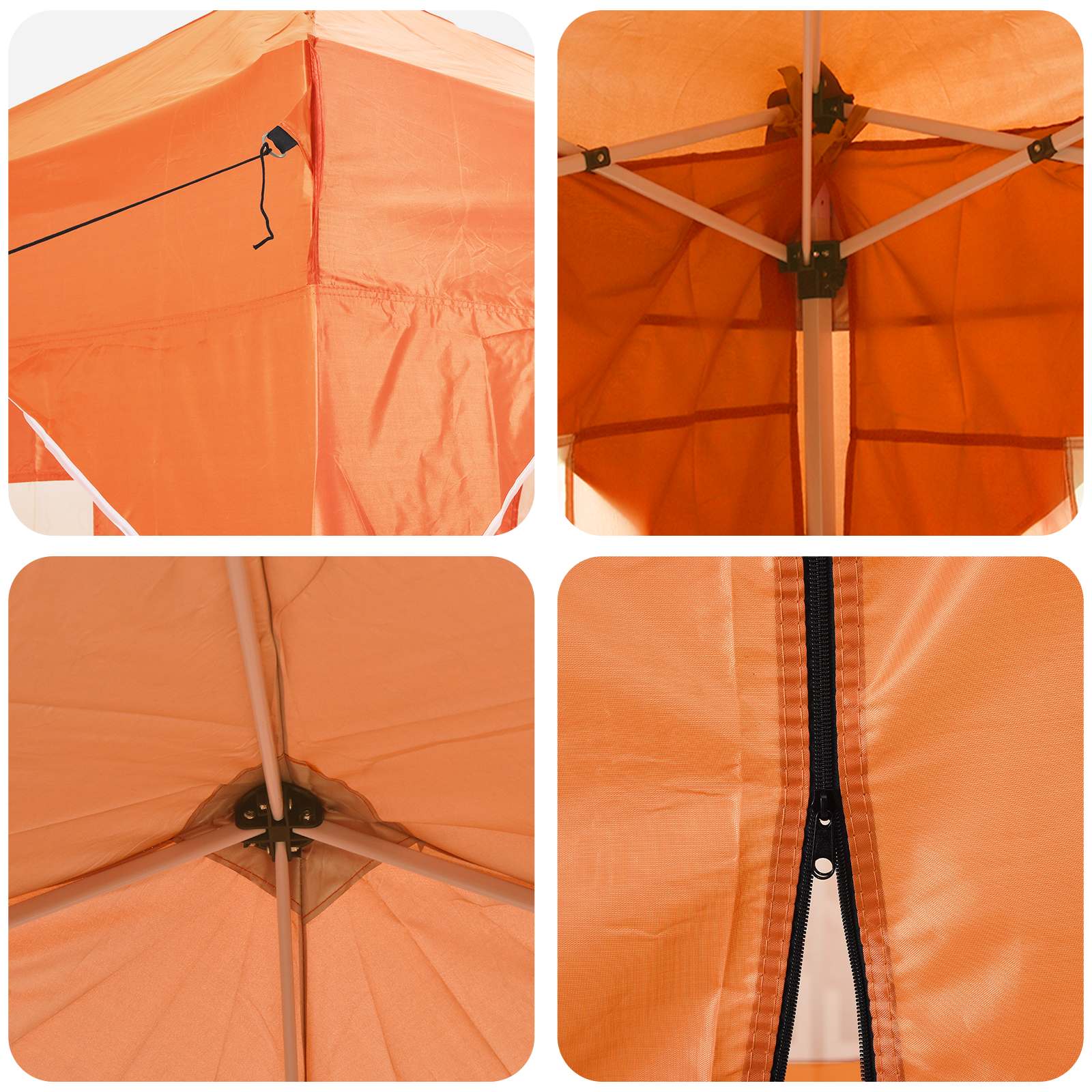 • Kestävä Oxford-kangas: Teltan päämateriaali tarjoaa hyvän suojan erilaisille sääolosuhteille. Sen vedenpitävyys ja UV-suoja pitävät mukavan tunnelman yllä, suojaten sekä vieraita että kalusteita auringolta ja kevyeltä sateelta.
